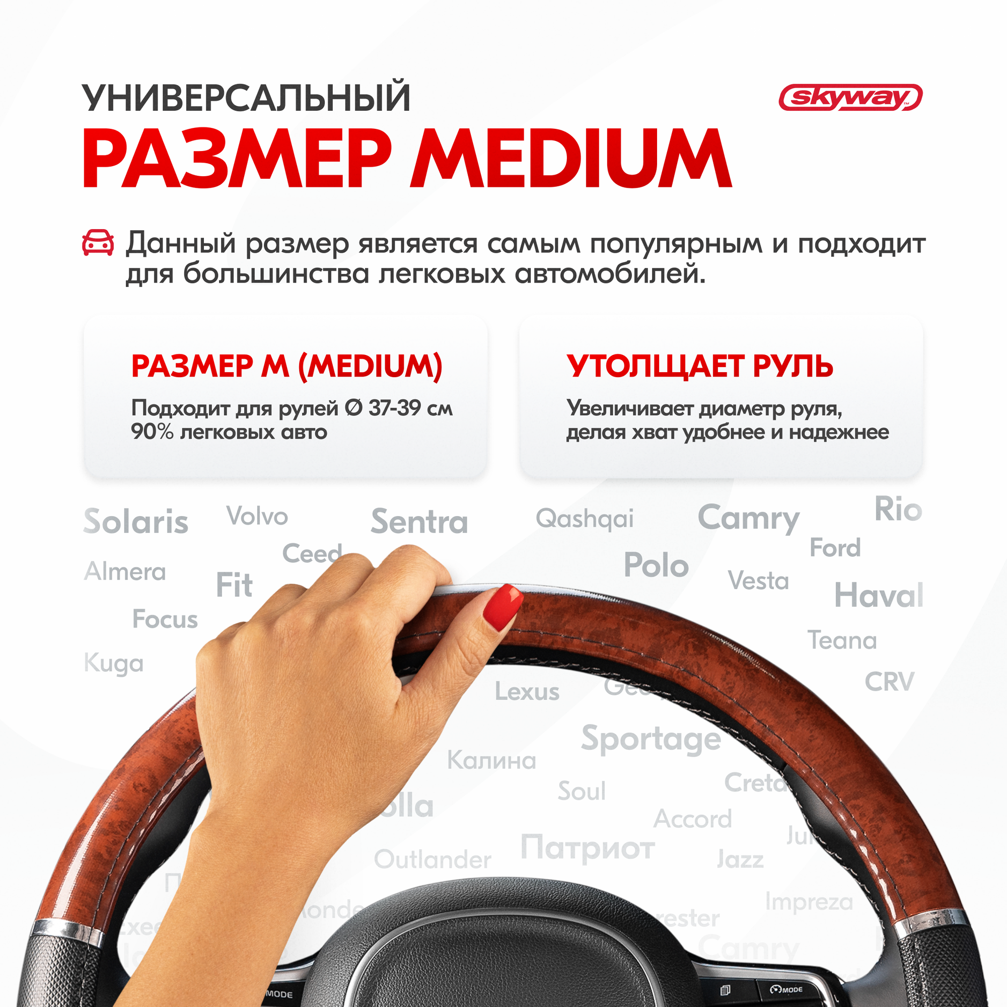 | Дополнительная информация | Рекомендации производителей: выбирайте оплётку под размер вашего рулевого колеса. Неверно выбранный размер может стать причиной проскальзывания оплётки или привести к невозможности снять или надеть её на руль. |