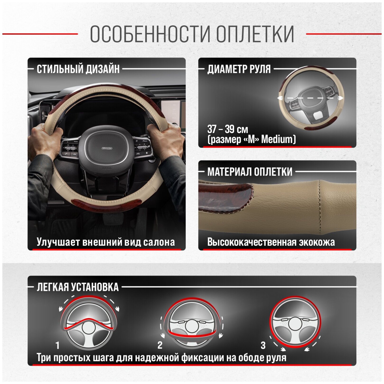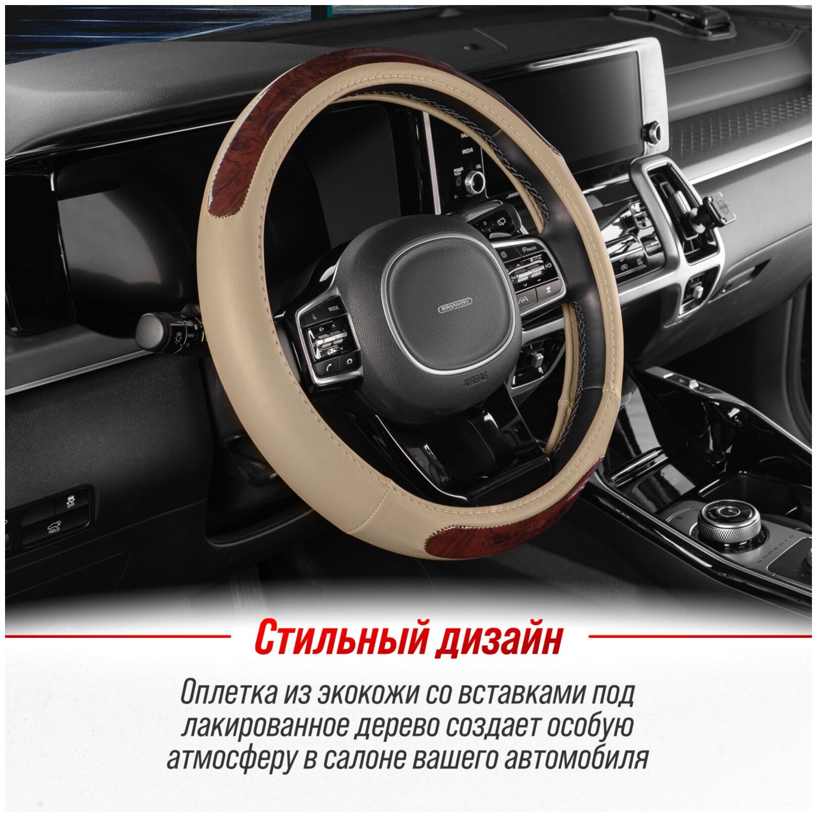 Оплетка на руль Wood-6 M (37-39) бежевый экокожа, S01102141 интересное: