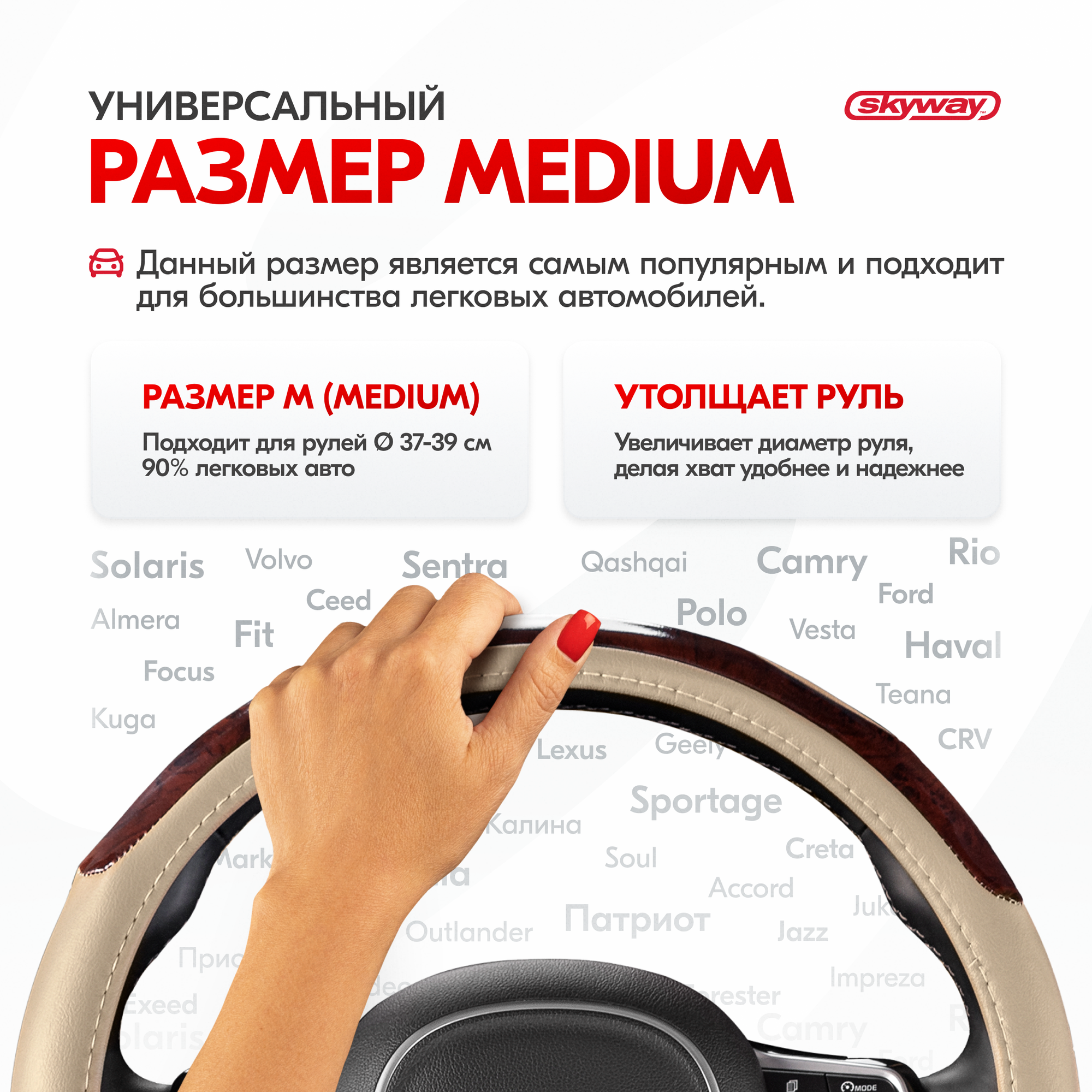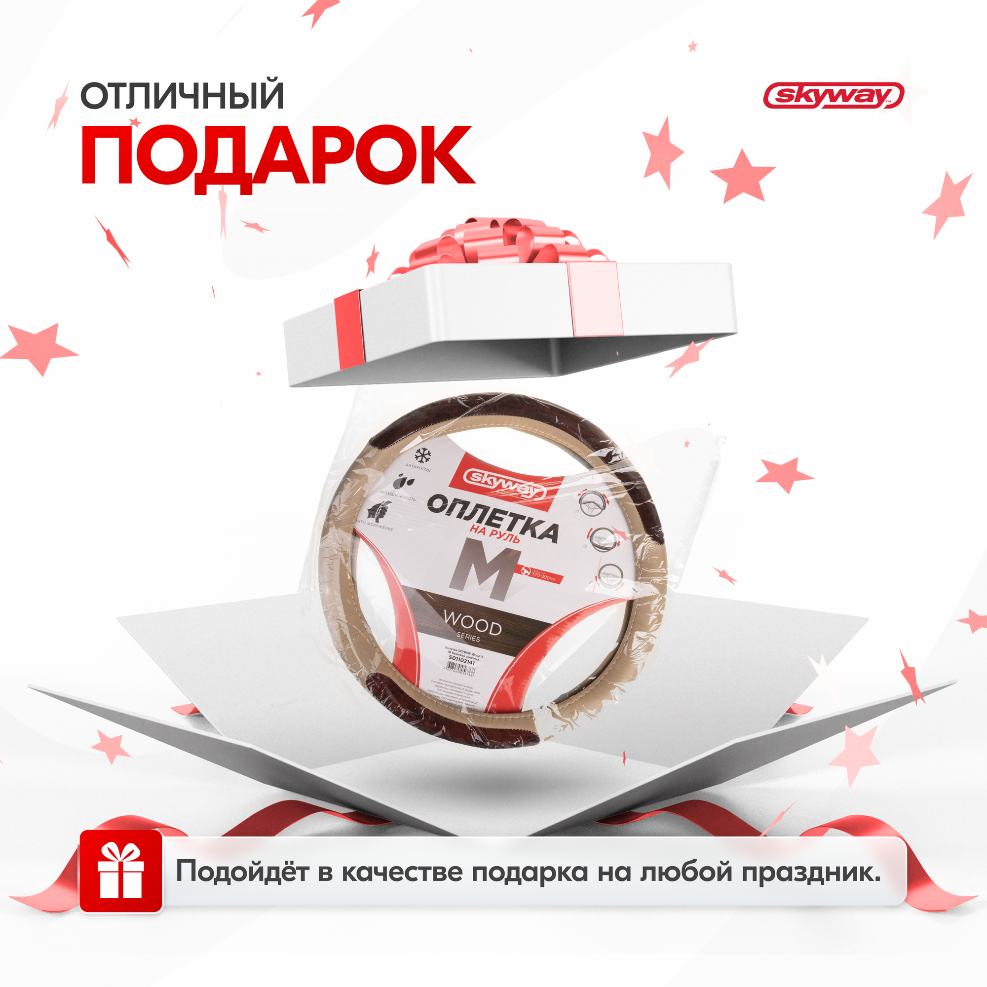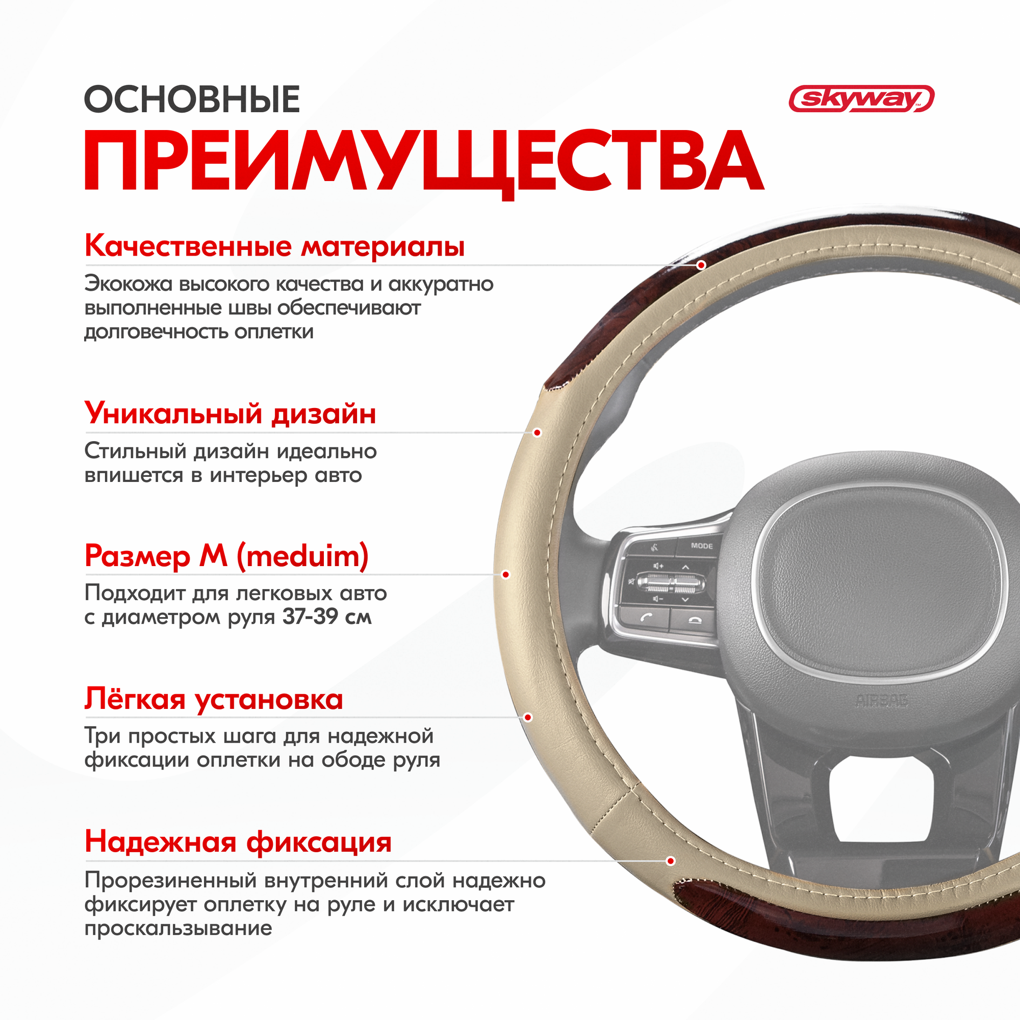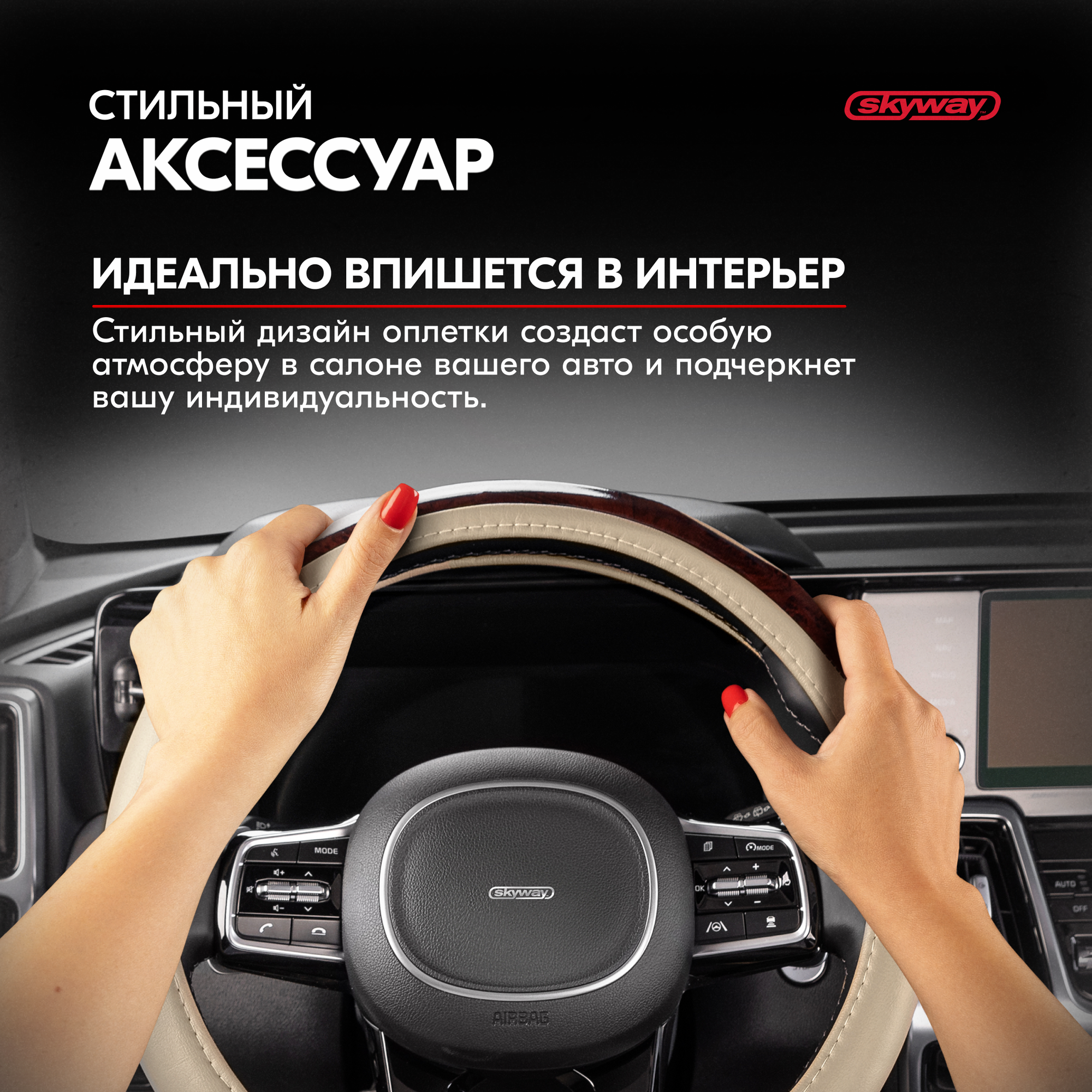 Оплетка руля SKYWAY Wood-6, экокожа, бежевая, M, 37/38/39, S01102141