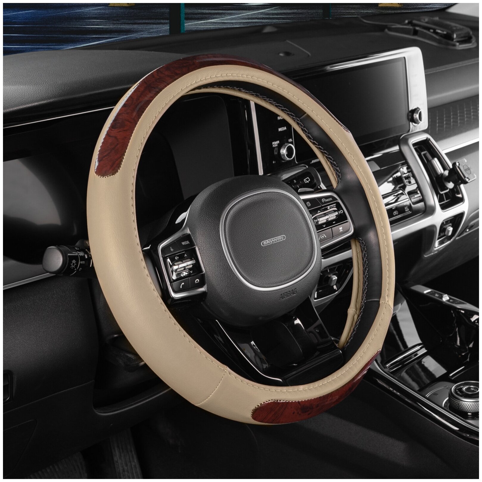 Купить Оплетка на руль Wood-6 M (37-39) бежевый экокожа, S01102141