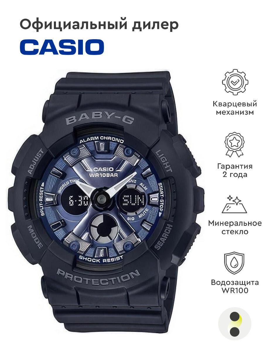 Купить Наручные часы CASIO Baby-G BA-130-1A2 женские, кварцевые, будильник, секундомер, таймер обратного отсчета, водонепроницаемые, противоударные, подсветка стрелок, LED-дисплей, подсветка дисплея, черный