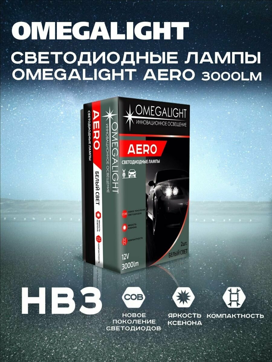 Лампа Светодиодная 12V Hb3 P20d 3000Lm (2Шт.) Aero Omegalight OMEGALIGHT арт. OLLEDHB3AERO-2