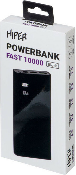 Внешний аккумулятор (Power Bank) HIPER Fast 10000, 10000мAч, черный [fast 10000 black]
