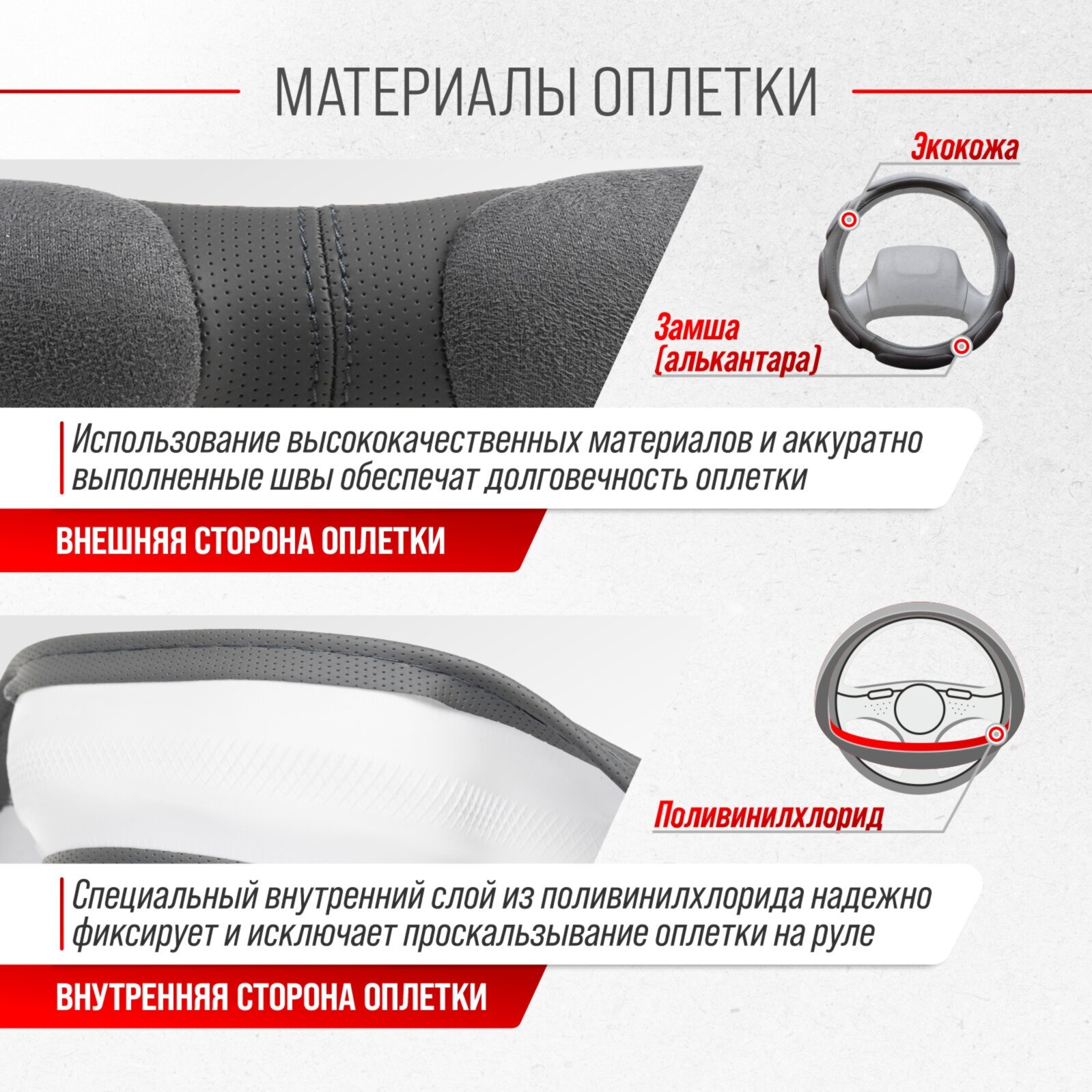 | Дополнительная информация | Рекомендации производителей: выбирайте оплётку под размер вашего рулевого колеса. Неверно выбранный размер может стать причиной проскальзывания оплётки или привести к невозможности снять или надеть её на руль. |
