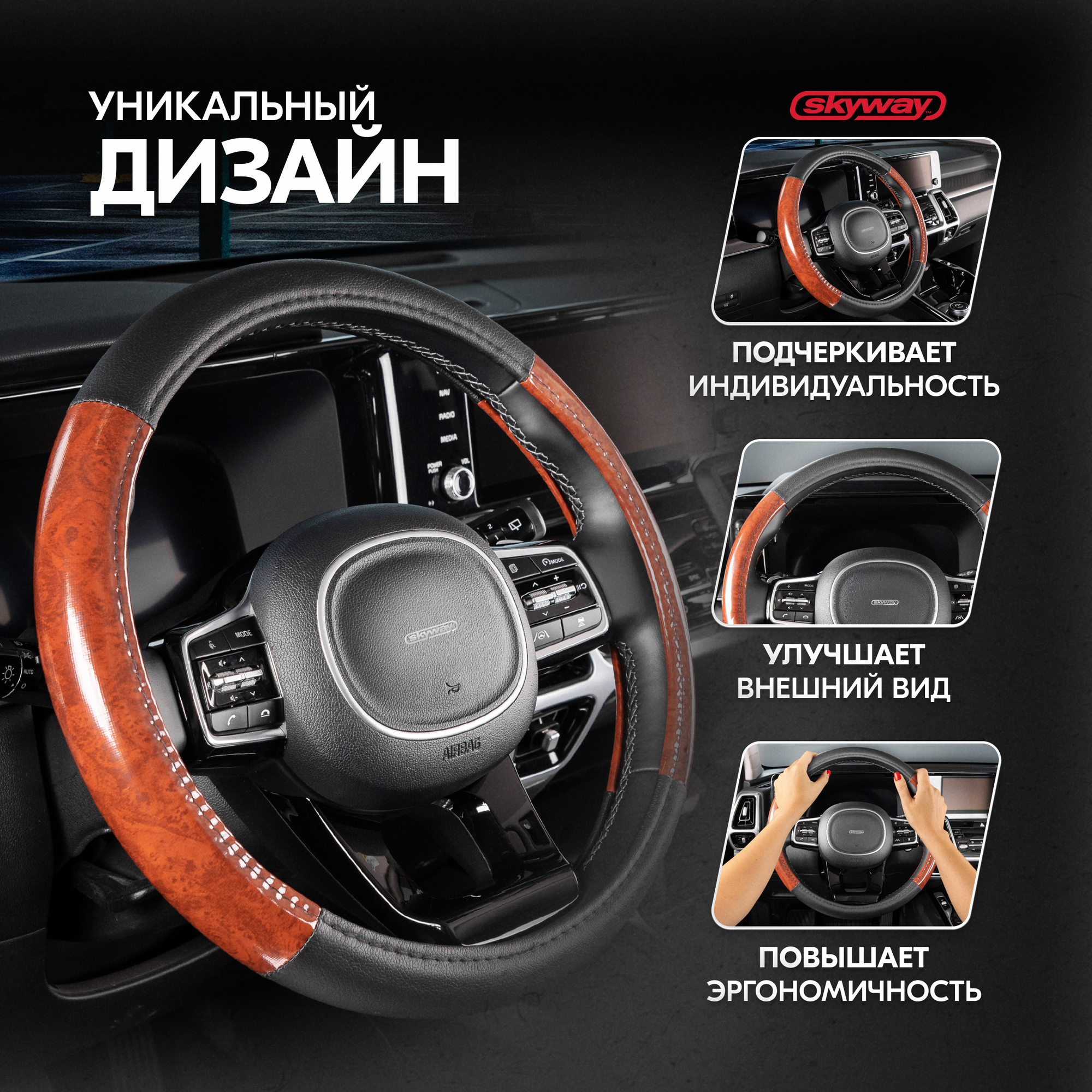 Купить Оплётка руля SKYWAY Combo-4 экокожа Черно/Коричневая М