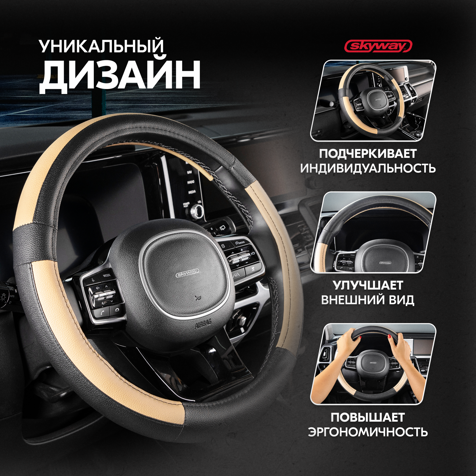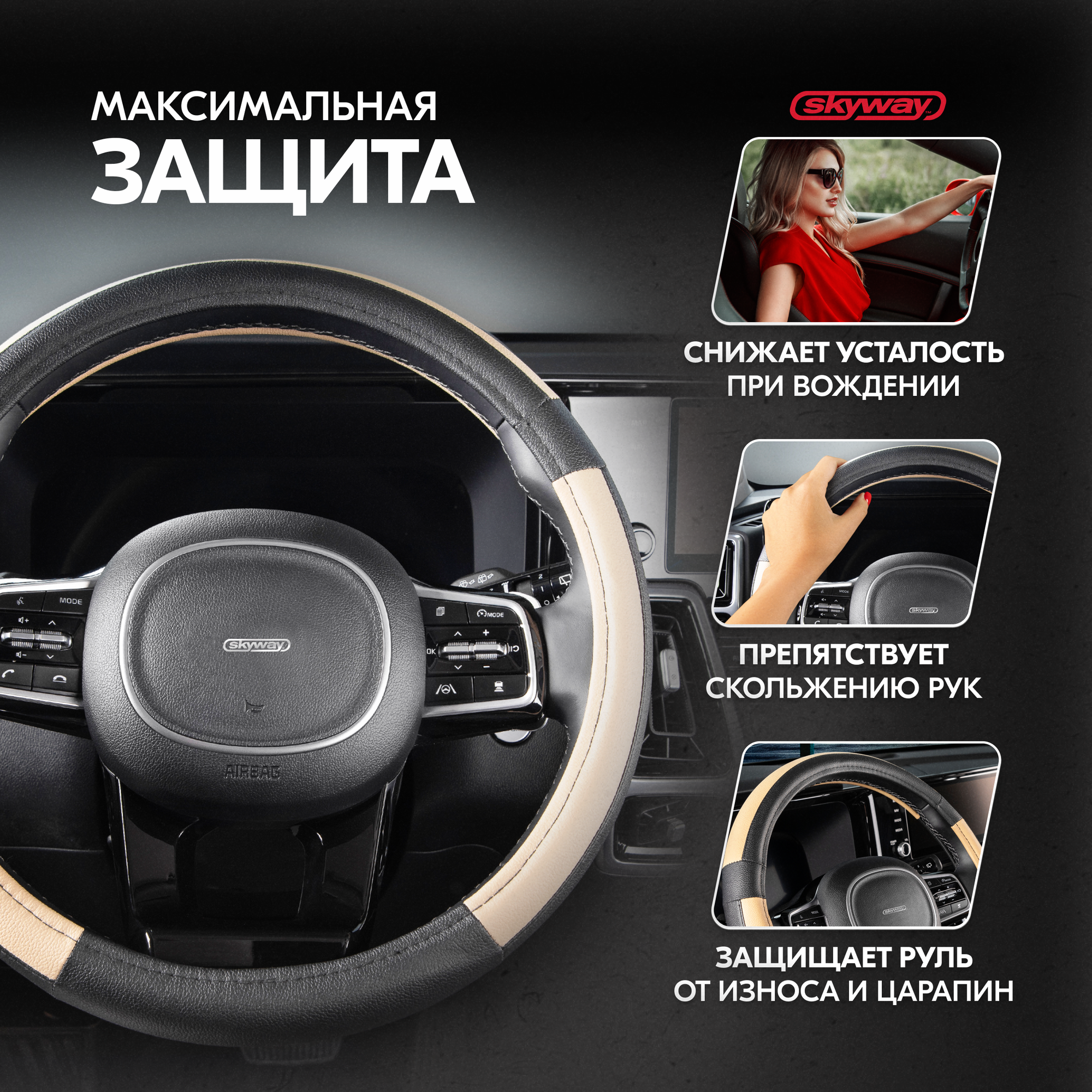 Оплетка на руль Combo-3 SKYWAY M (37-39) черный; бежевый экокожа, S01102360