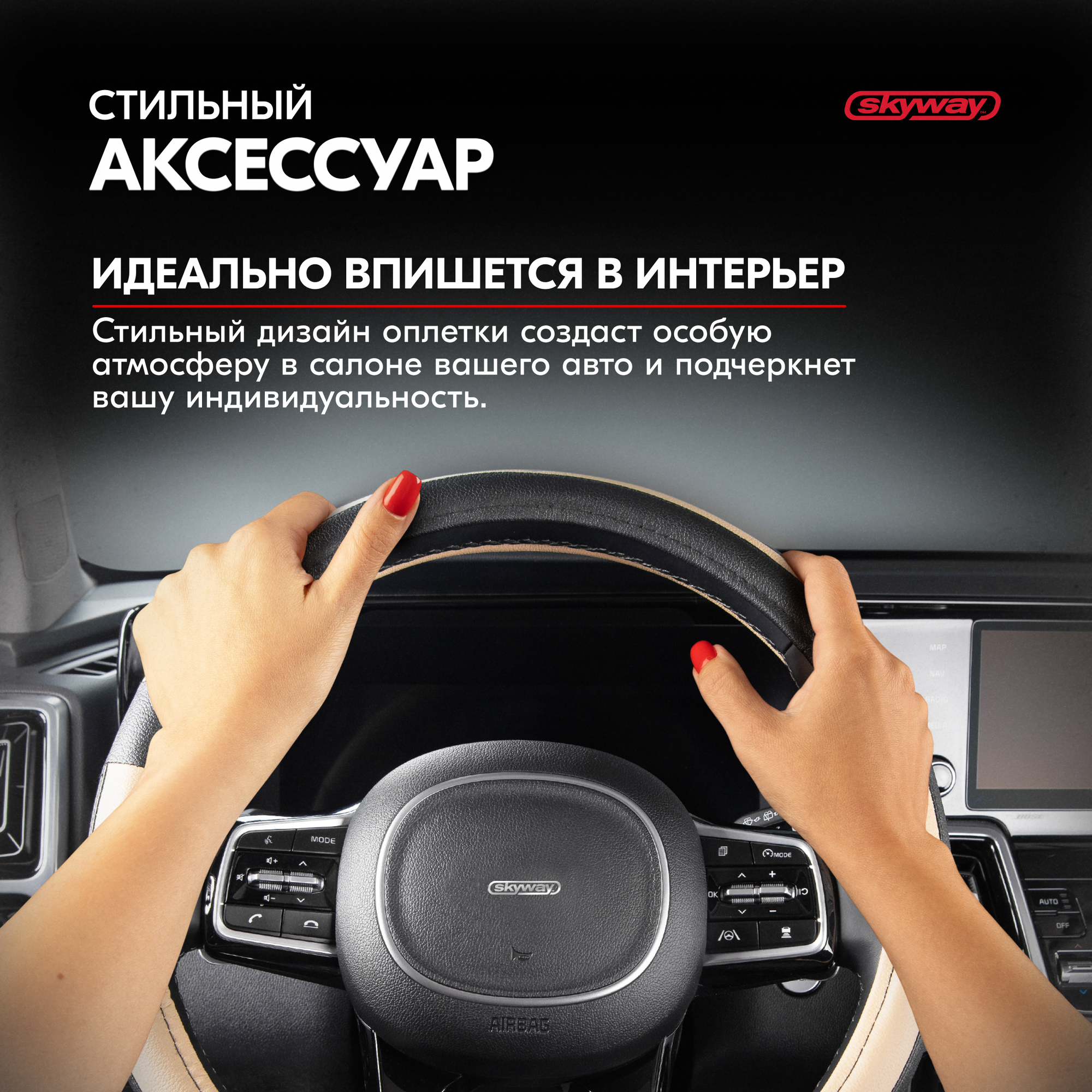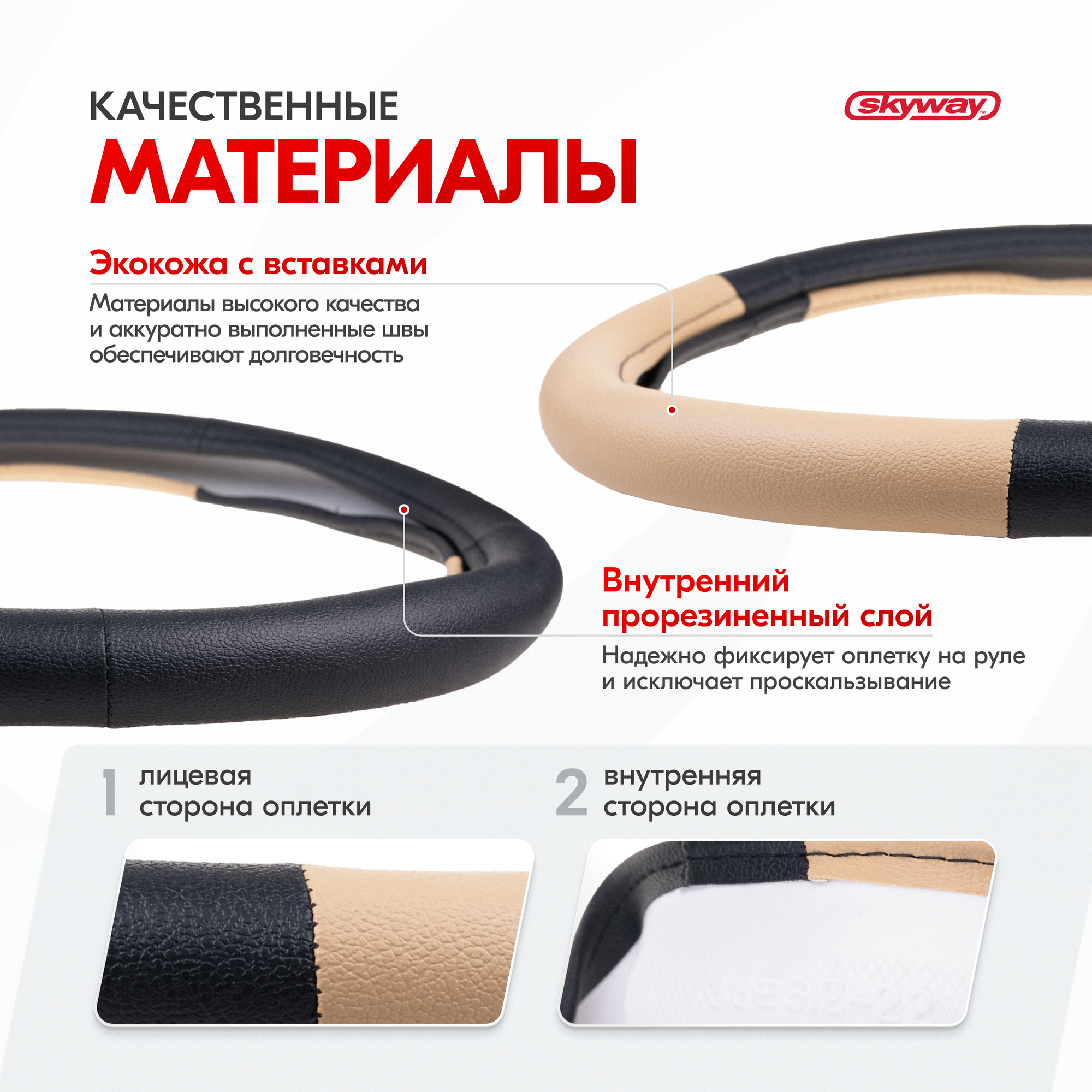 СохранитьОплётка руля SKYWAY кожаная Черная с бежевыми вставками (M) интересное: