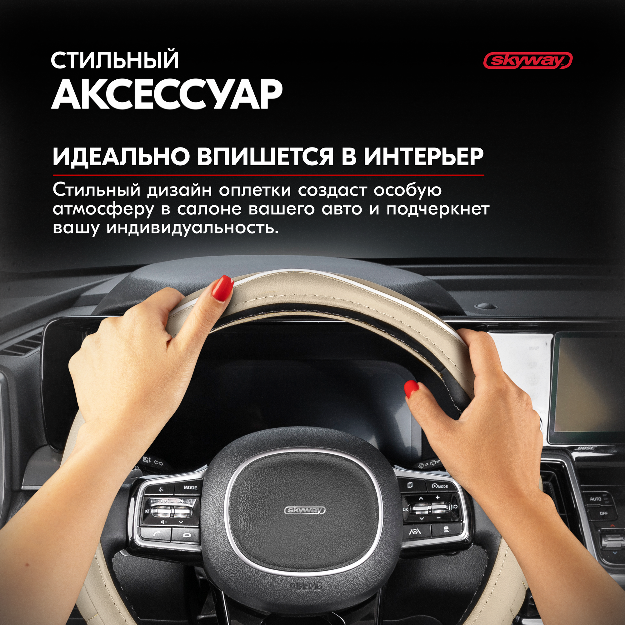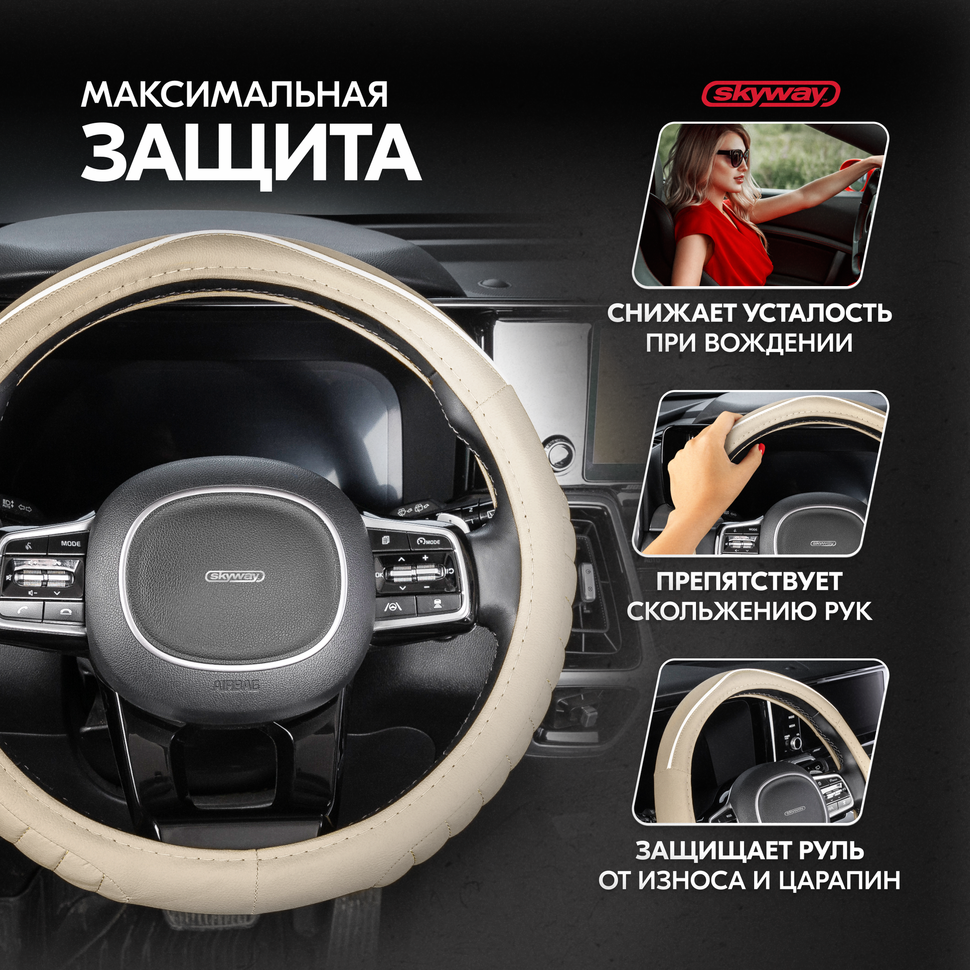 Оплетка на руль Combo-3 SKYWAY M (37-39) черный; бежевый экокожа, S01102360