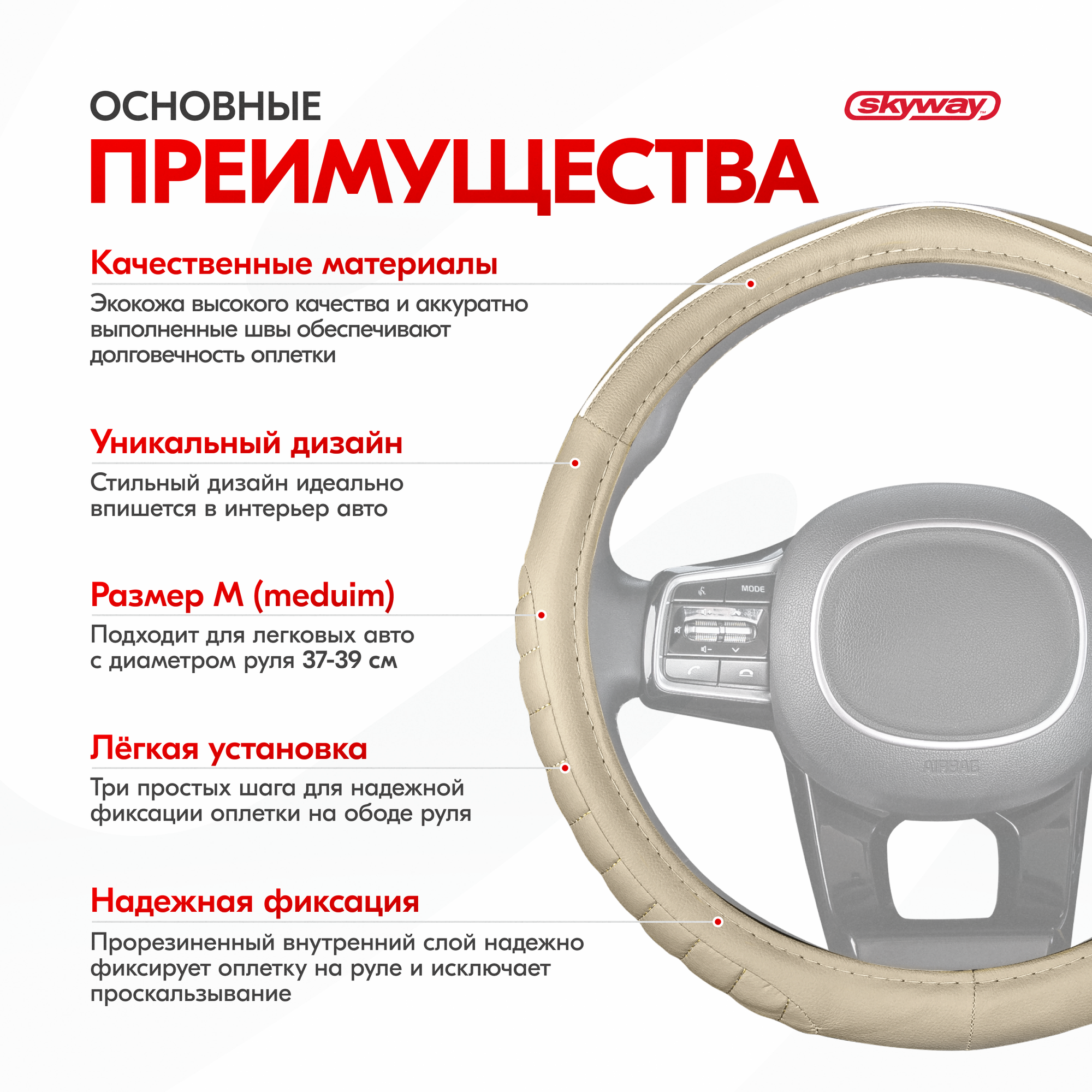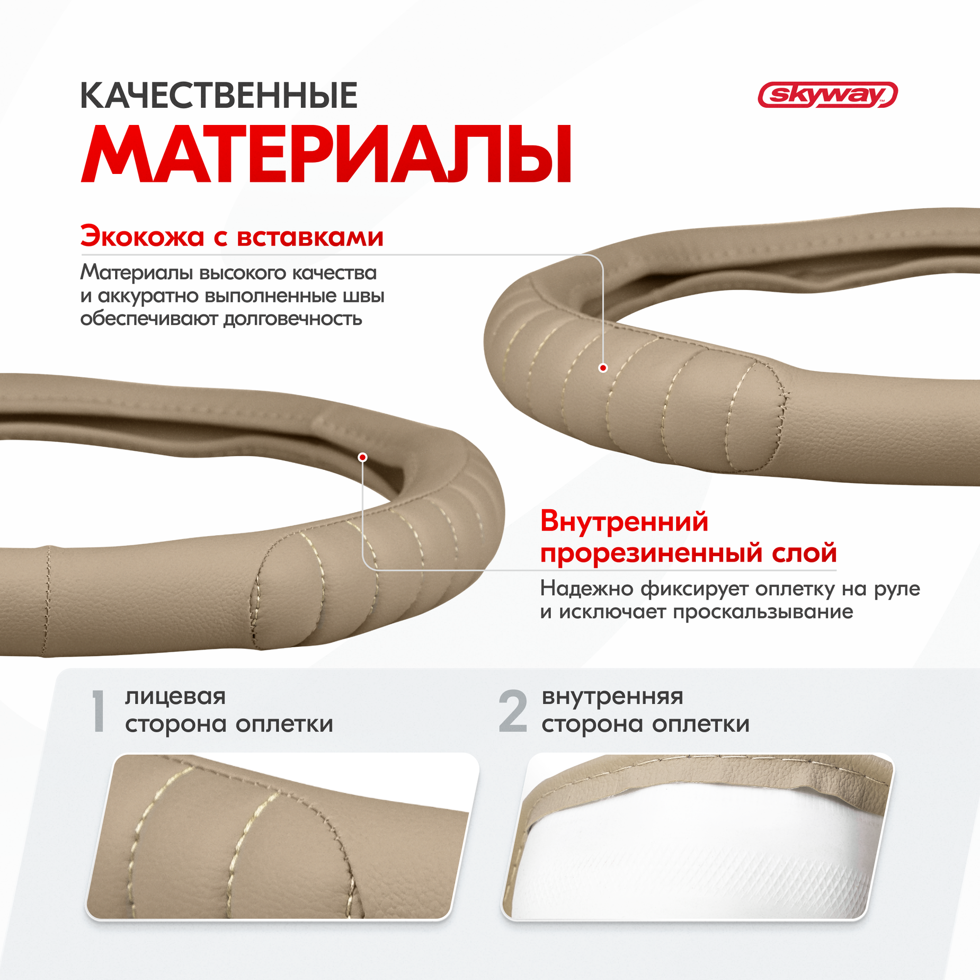 СохранитьОплетка на руль Combo-1 SKYWAY M (37-39) бежевый; белый экокожа, S01102320 интересное: