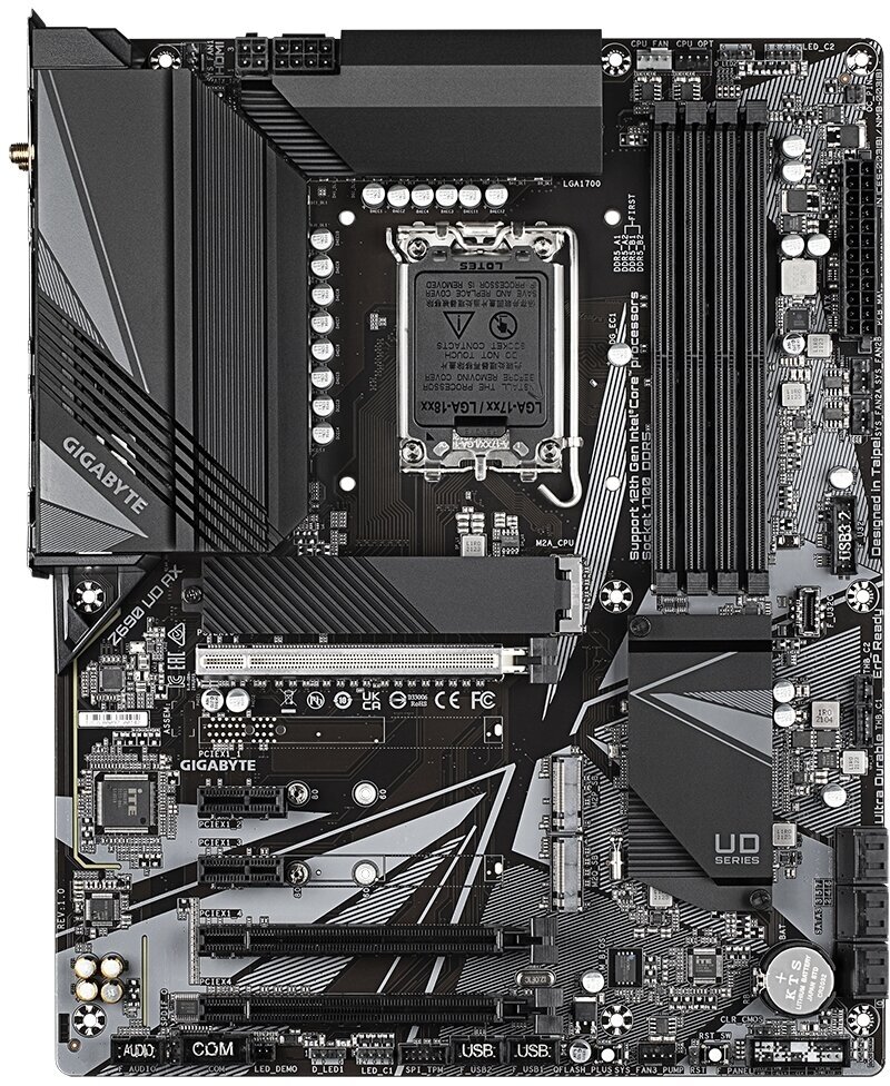 Материнская плата GIGABYTE Z790 UD AX (LGA1700/Z790/4xDDR5/PCI-Ex16/PCI-Ex16/3xPCI-Ex1/PCI-Ex4/3xM.2/SB7.1/Bluetooth/Wi-Fi/GLAN/DisplayPort/HDMI/ATX)