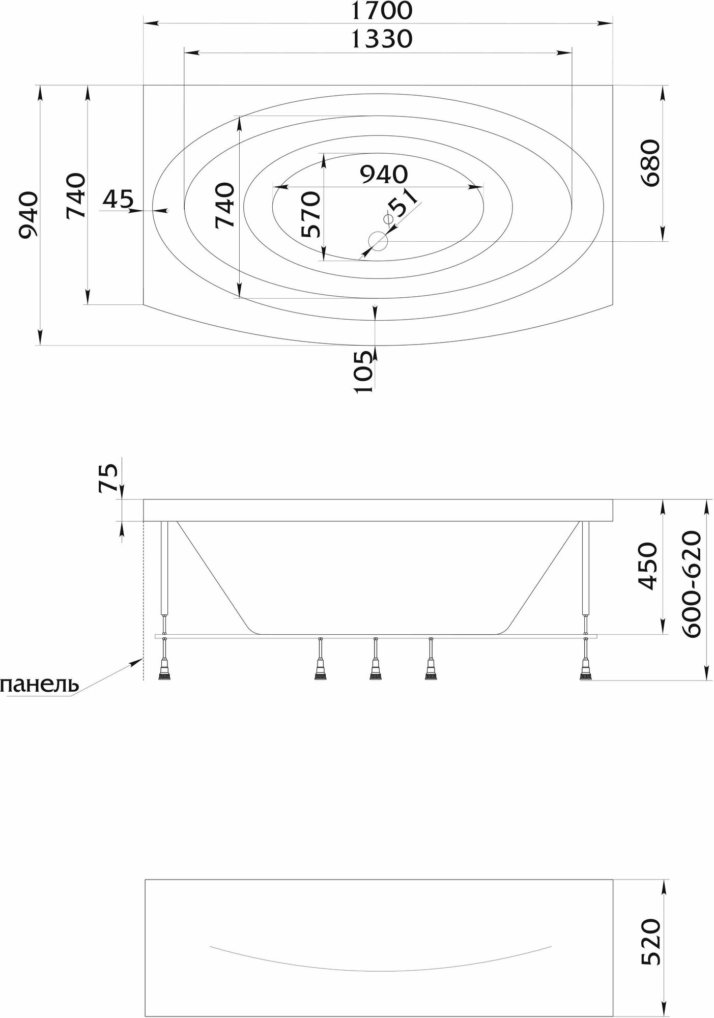 Акриловая ванна Marka One NEGA 170х95 интересное: