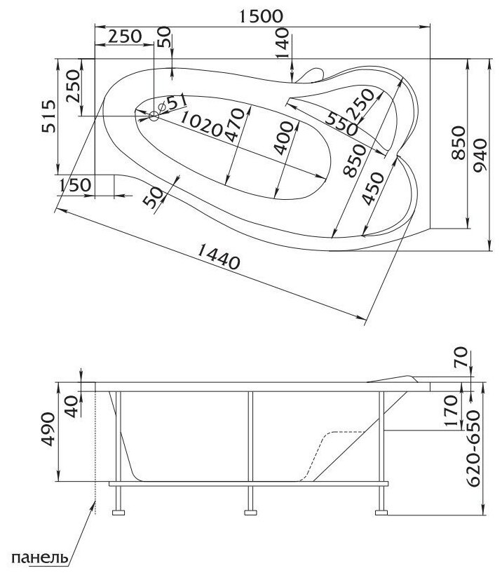 Акриловая ванна 150х94 см R Marka One Gracia 01гр1590п