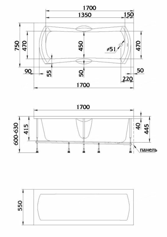 | Размеры (ДхШхВ) | 170х75х44.50 см |