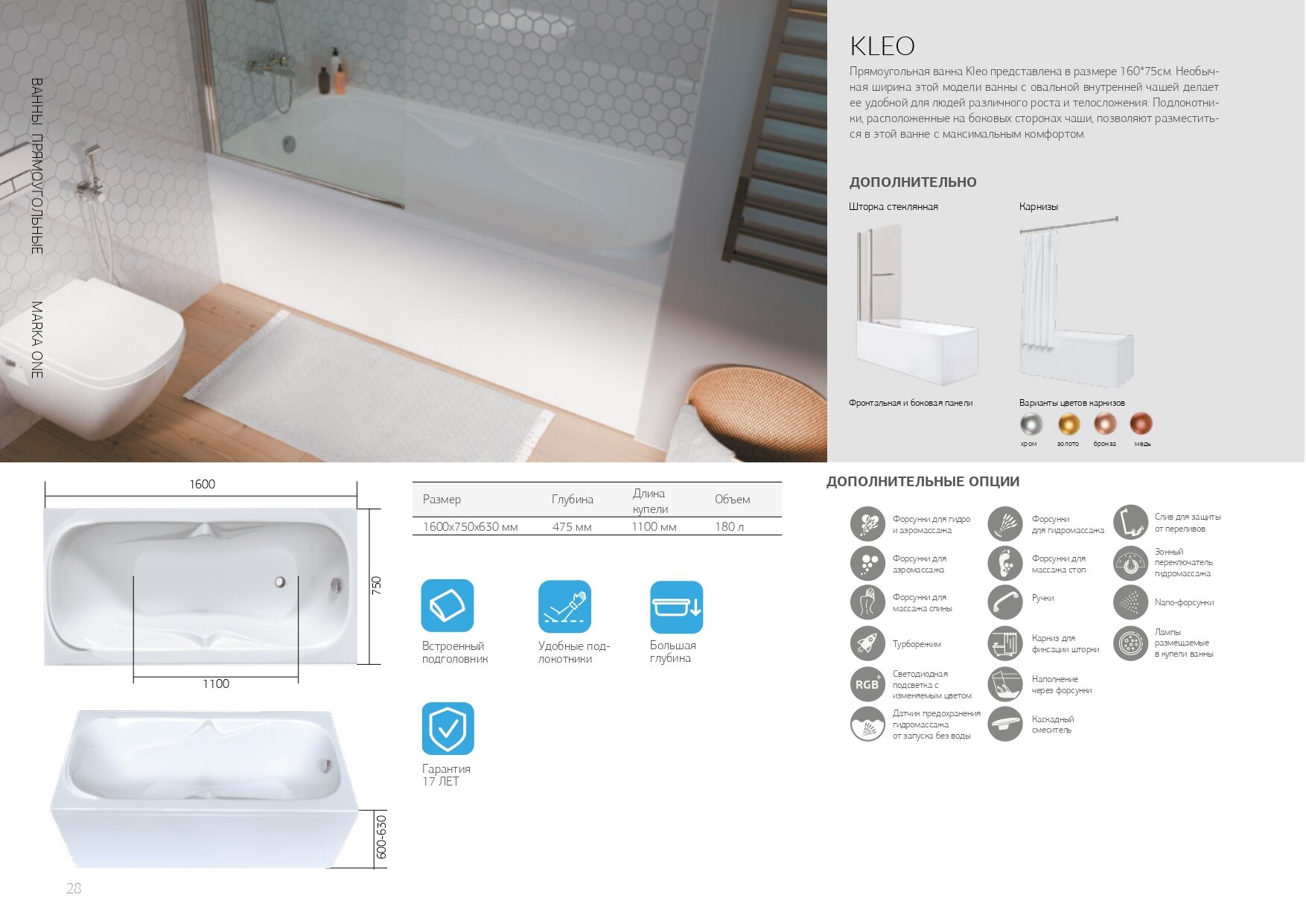 Акриловая ванна Marka One KLEO160x75 интересное: