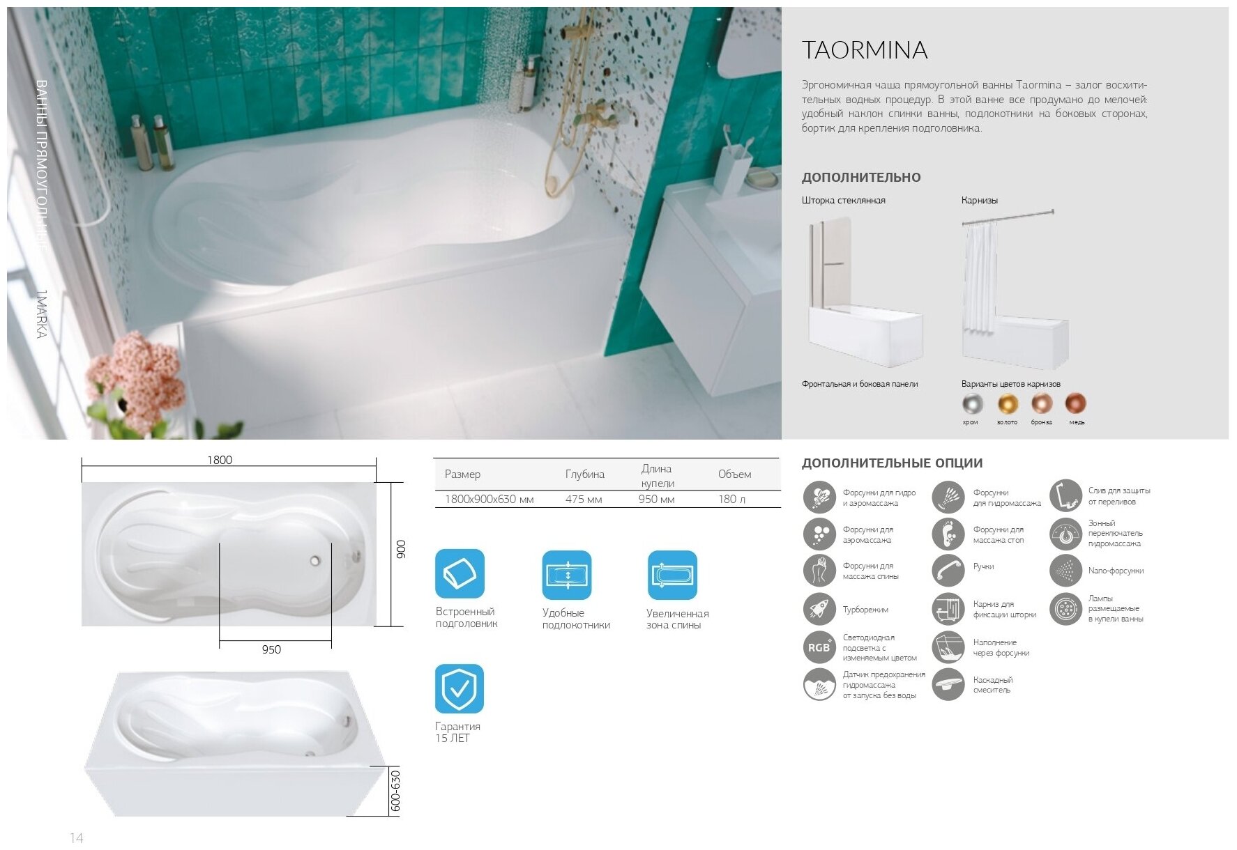 Акриловая ванна 1Marka TAORMINA 180х90 интересное: