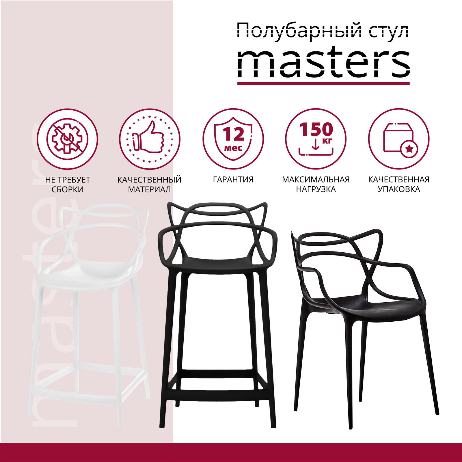 Комплект из 2-х стульев полубарных Masters чёрный / Стулья пластиковые / Барный стул / Стул кухонный / Стулья для бара / Мебель для дачи и сада
