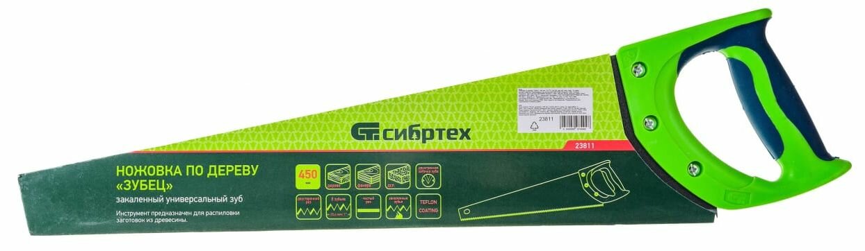 Сибртех Ножовка по дереву "Зубец", 450 мм, 7-8 Tpi, зуб 2D, кал.зуб, защ. покр., 2-х комп. рук-ка 23