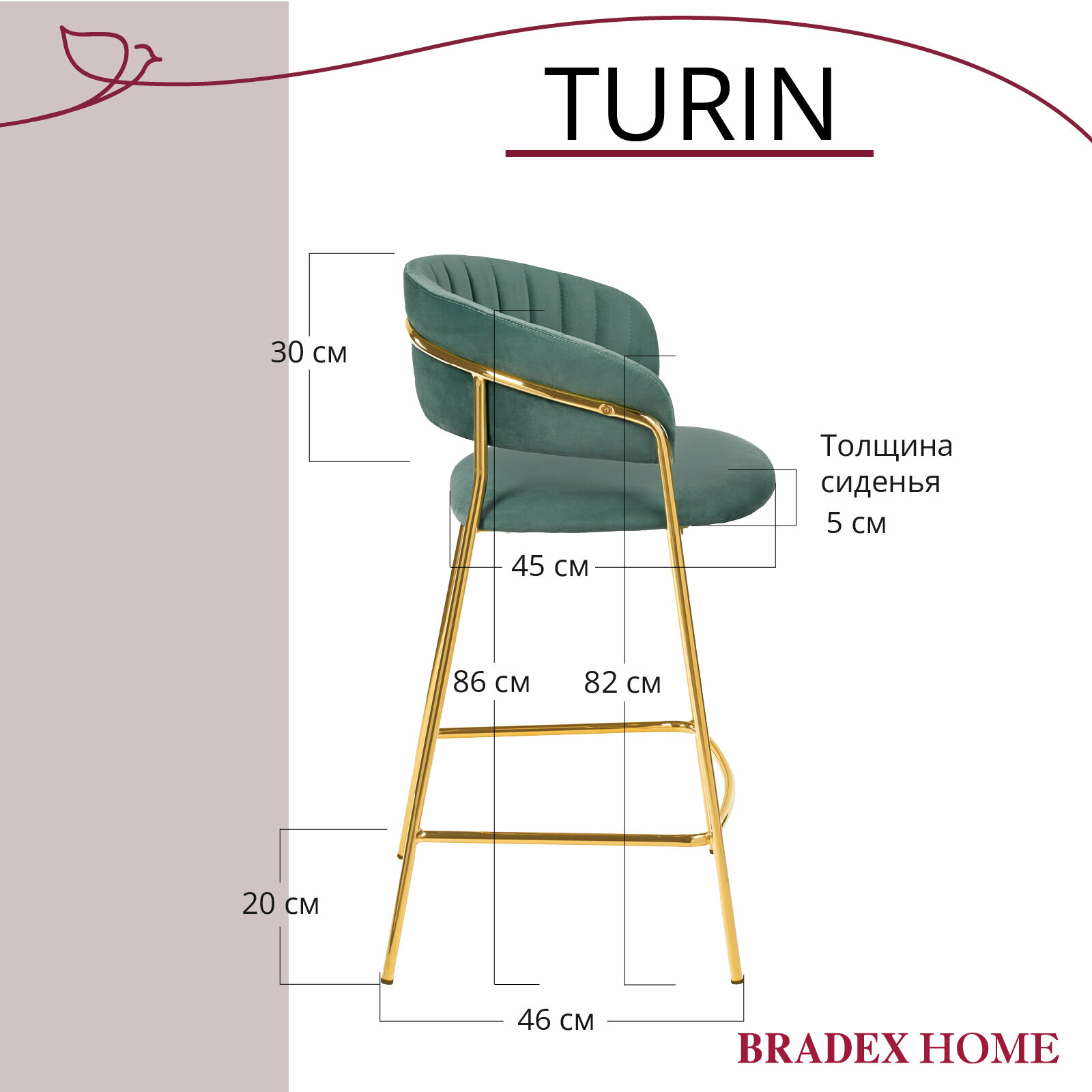 Стул полубарный Bradex Turin зеленый с золотыми ножками (FR 0908)