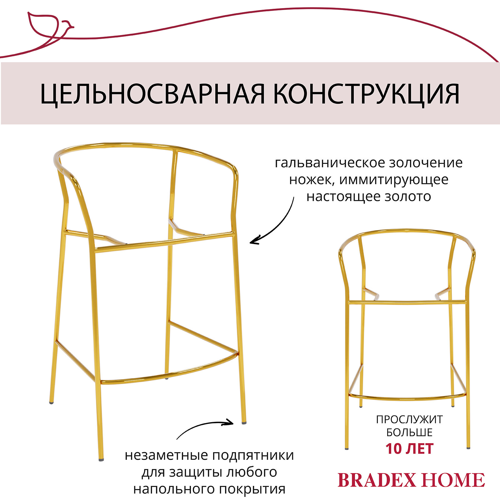 Стул полубарный Turin винный с золотыми ножками