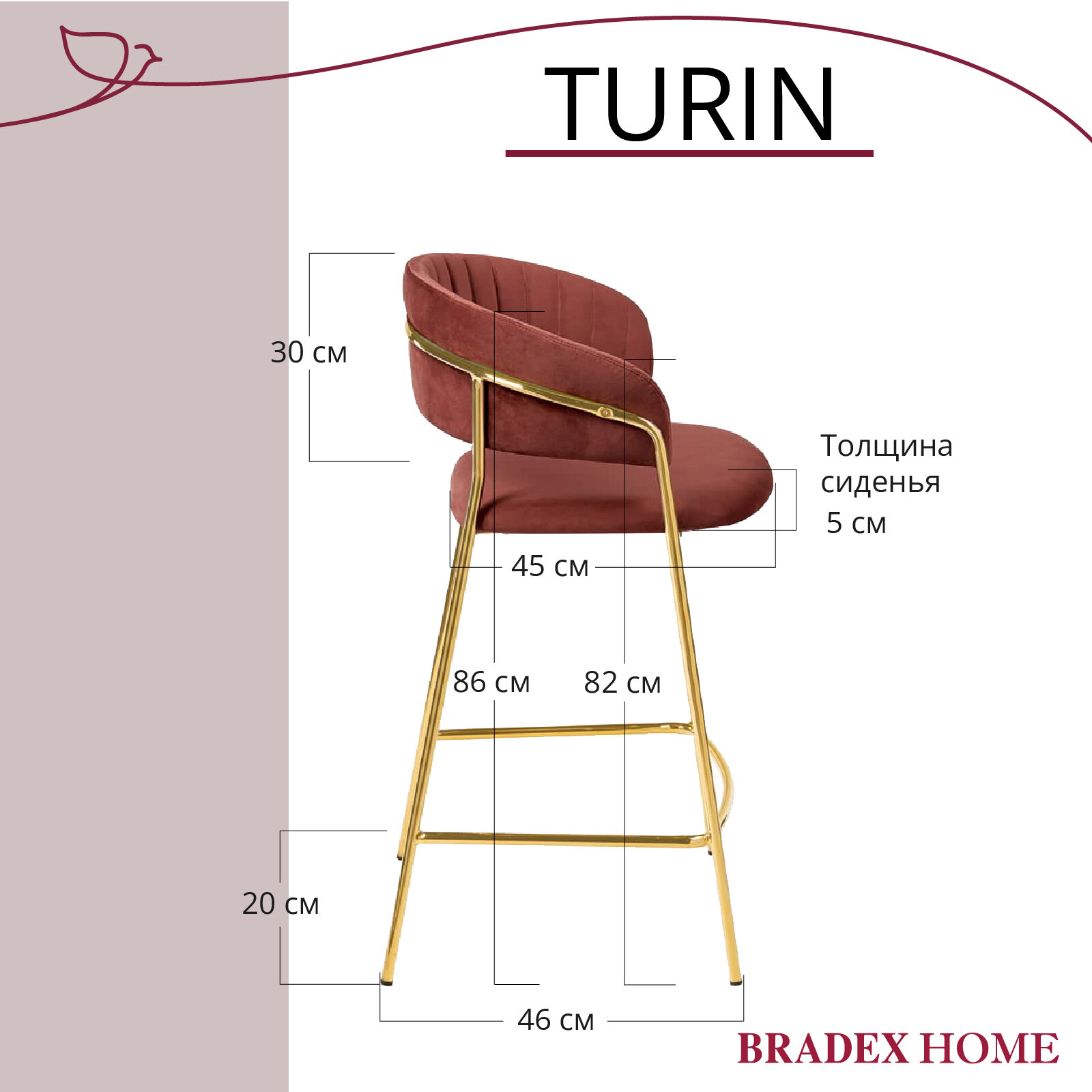 Стул полубарный Bradex Home Turin серый с золотыми ножками