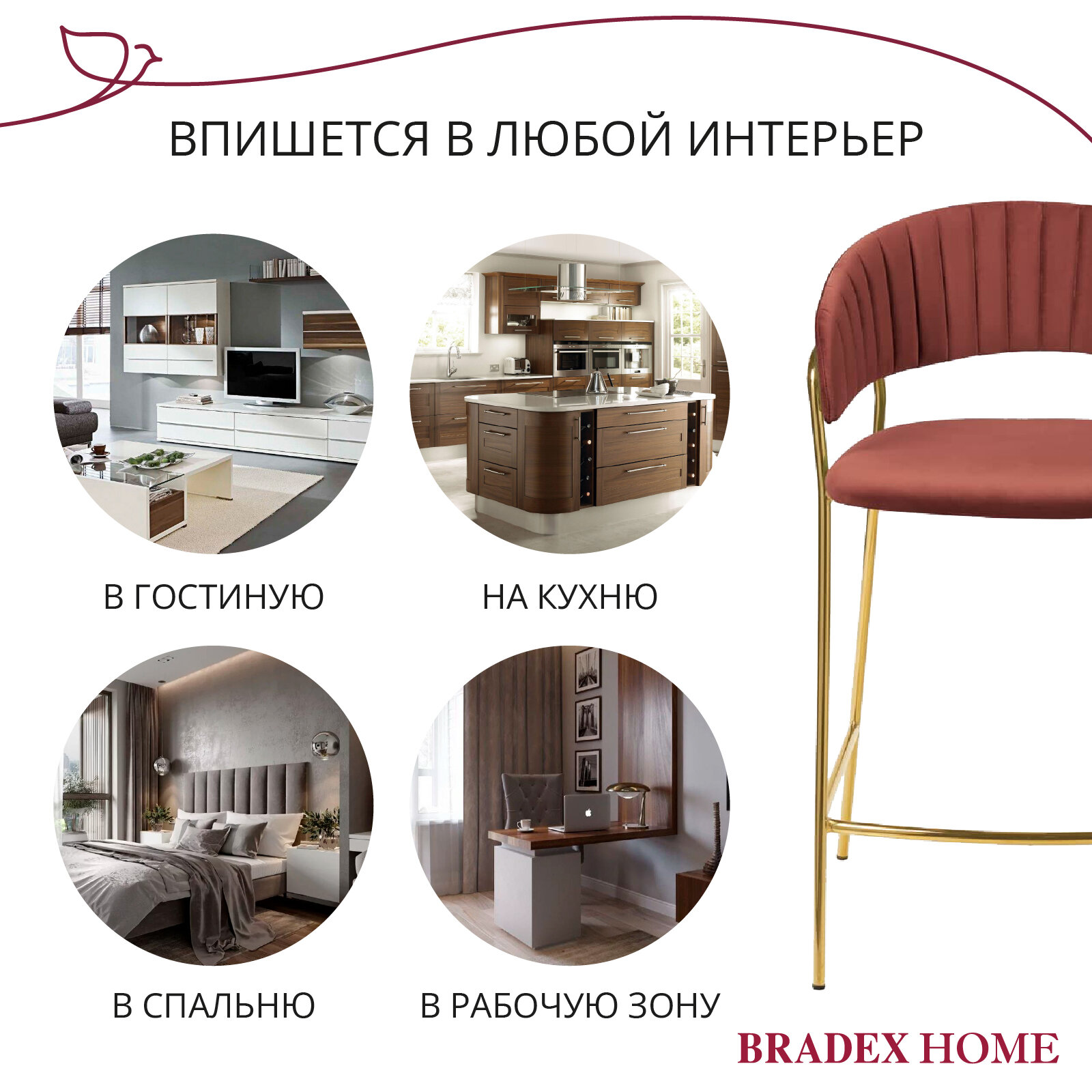 СохранитьСтул для кухни со спинкой полубарный мягкий велюр Turin терракотовый с золотыми ножками интересное: