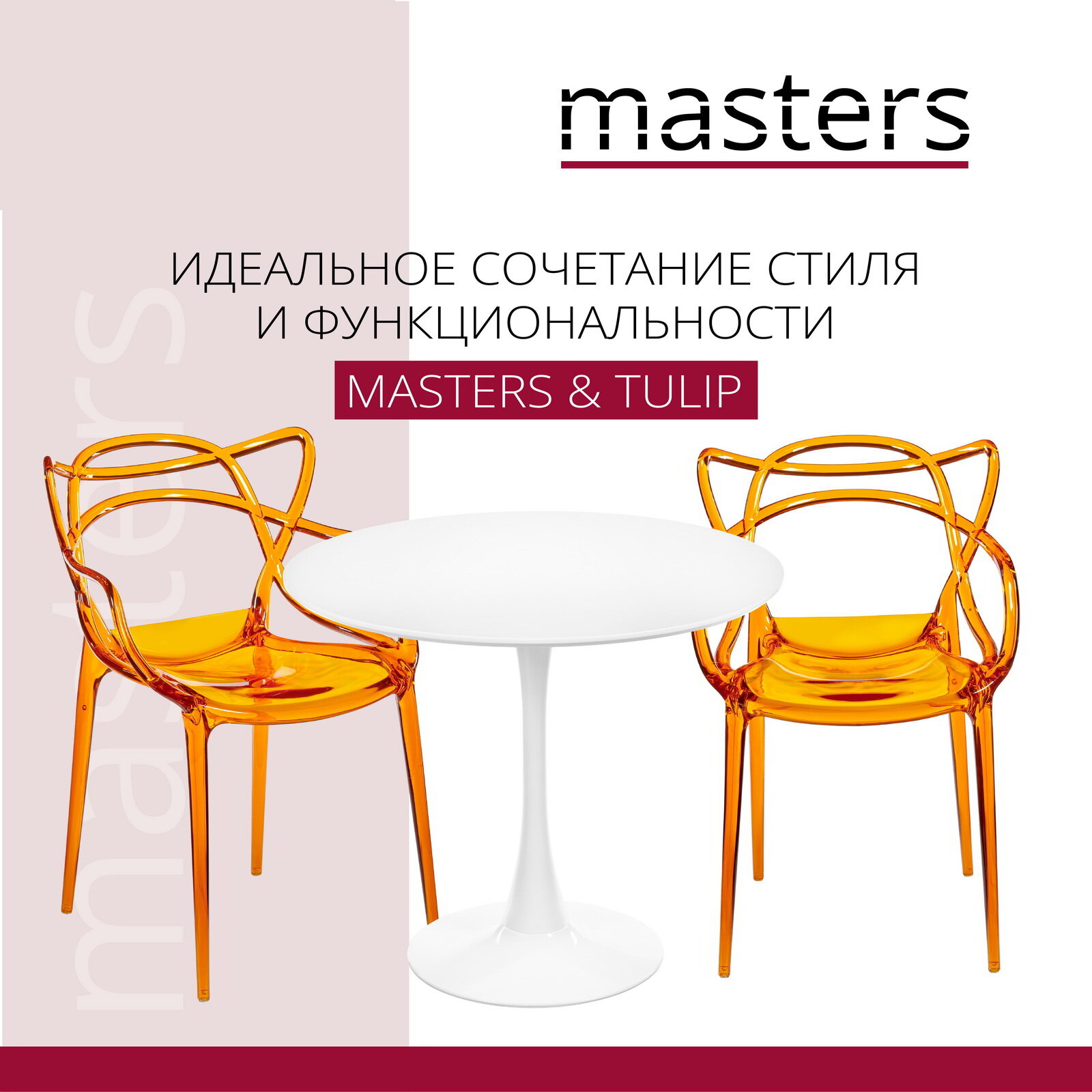 СохранитьСтул для кухни пластиковый со спинкой и подлокотниками Masters прозрачный оранжевый интересное: