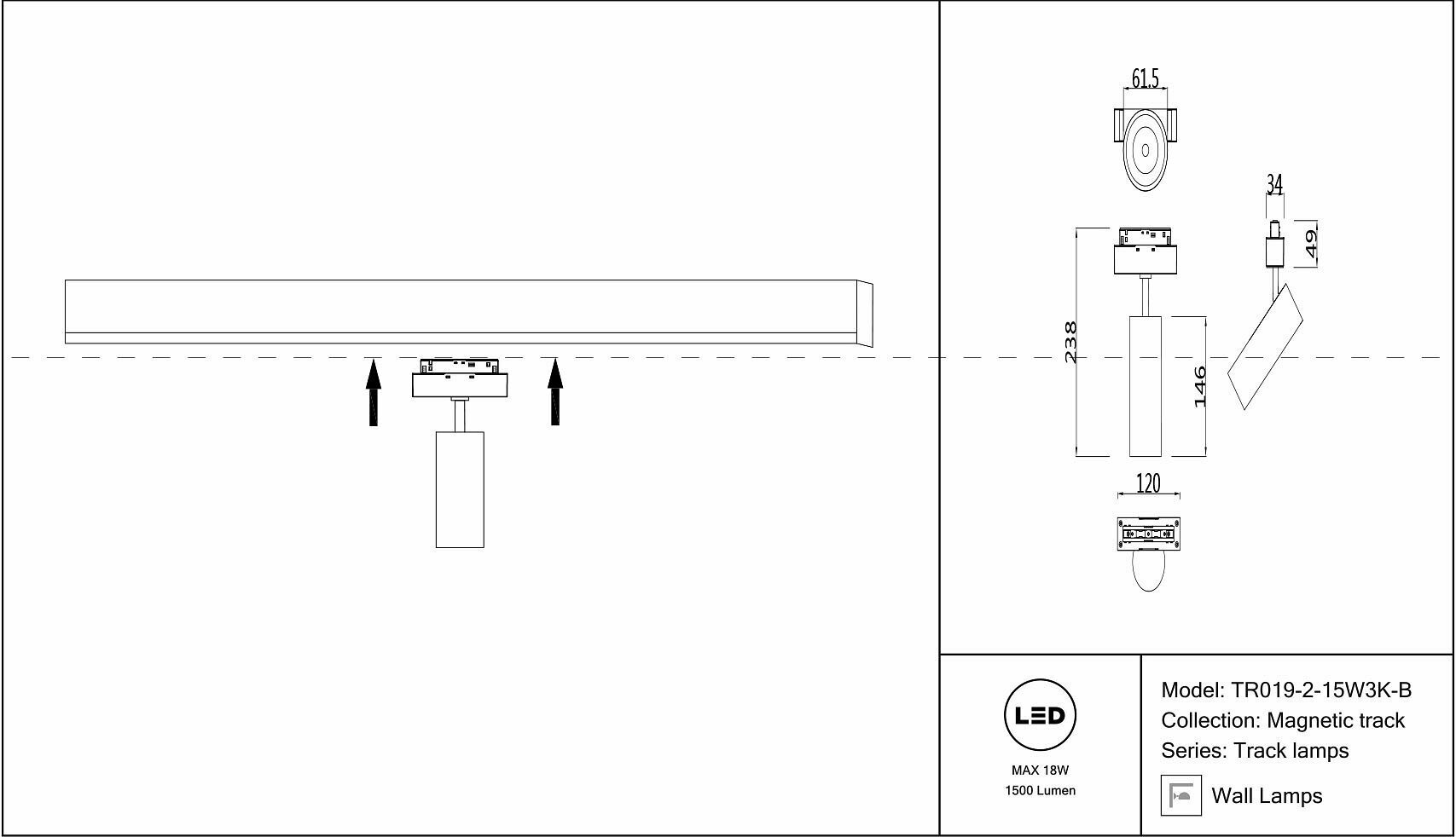 Трековый светильник Technical Track lamps TR019-2-15W3K-B