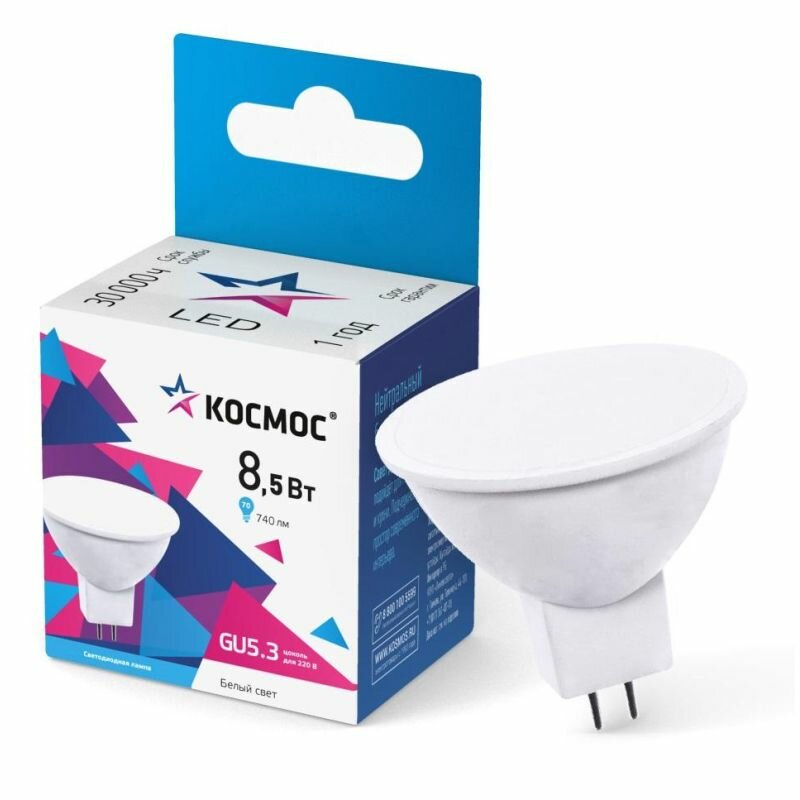 Лампа светодиодная JCDR 8.5Вт 220В GU5.3 4500К Космос LkecLED8.5wJCDRC45 (3шт.в упак.) интересное: