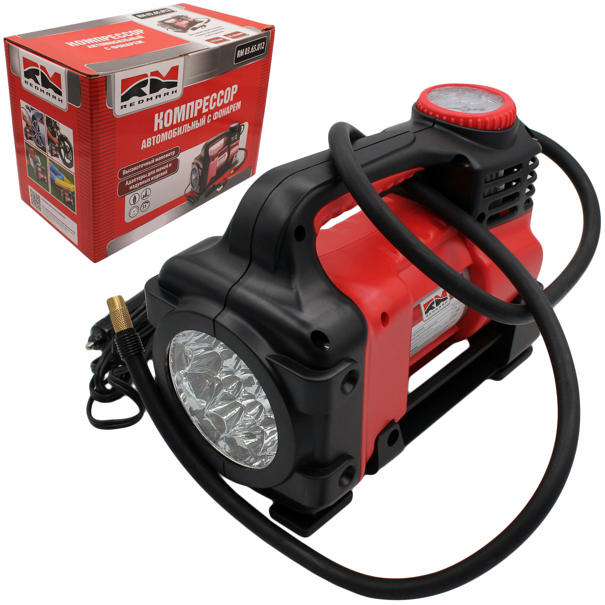 REDMARK RM0365012 Компрессор 10 атм-35л/мин 160 Ватт "RedMark" (с фонарем + переход. с прикуривателя на клеммы АКБ)
