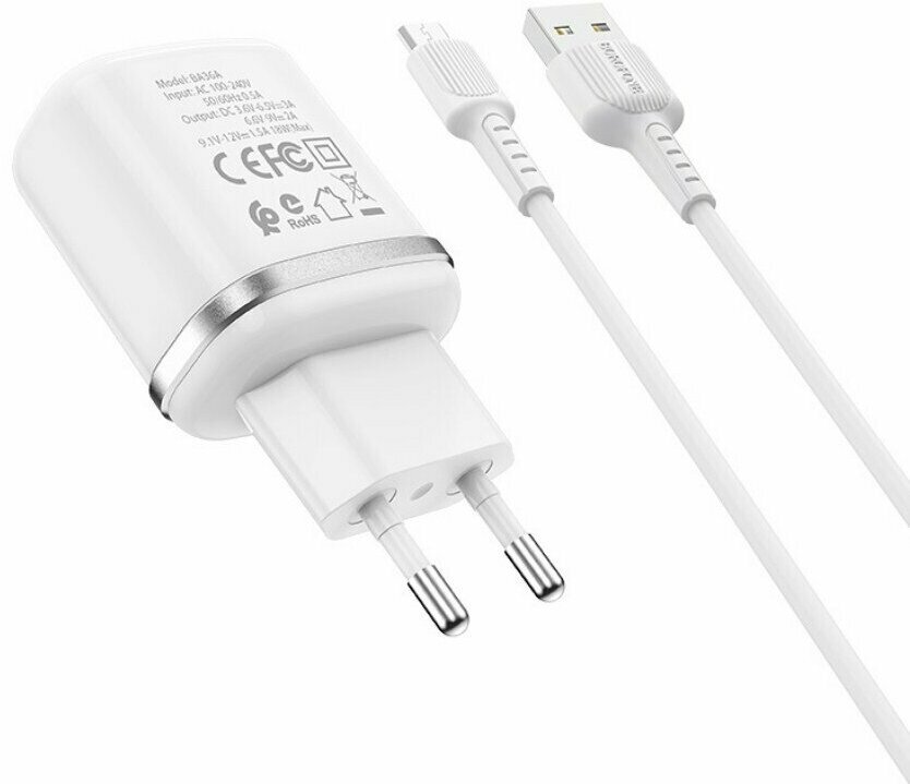 Сетевое зарядное устройство Borofone BA36A High Speed + кабель microUSB, 18 Вт, белый
