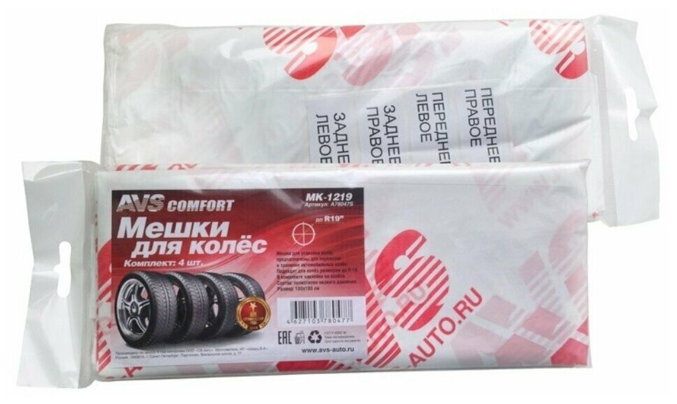 Мешки для колес AVS МК-1219 для колёс размером до R 19 / комплект - 4 шт. (A78047S) интересное: