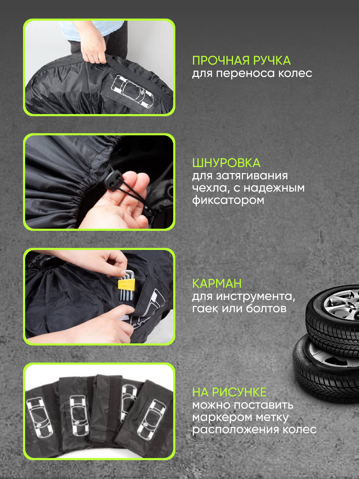 Чехлы мешки для автомобильных колес R 13-18 4 шт интересное: