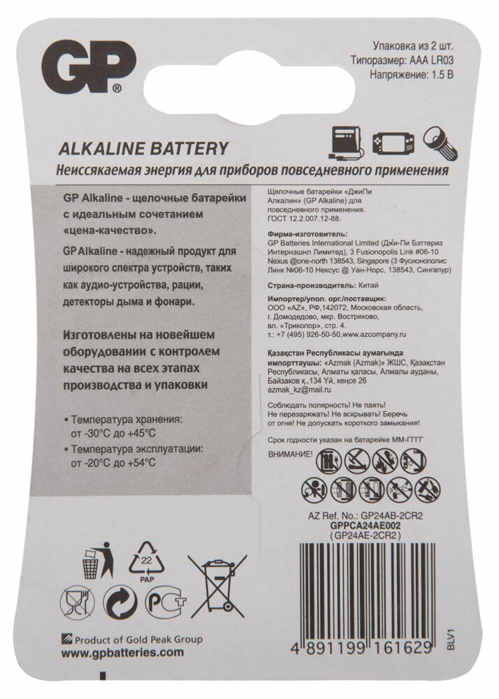 GP24A-2CR2 Элемент питания ААА алкалиновый, 2шт, GP интересное: