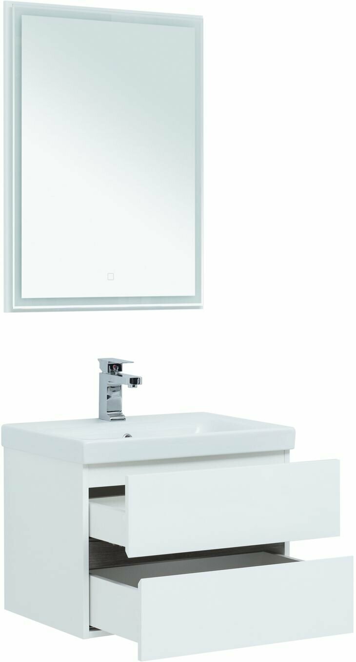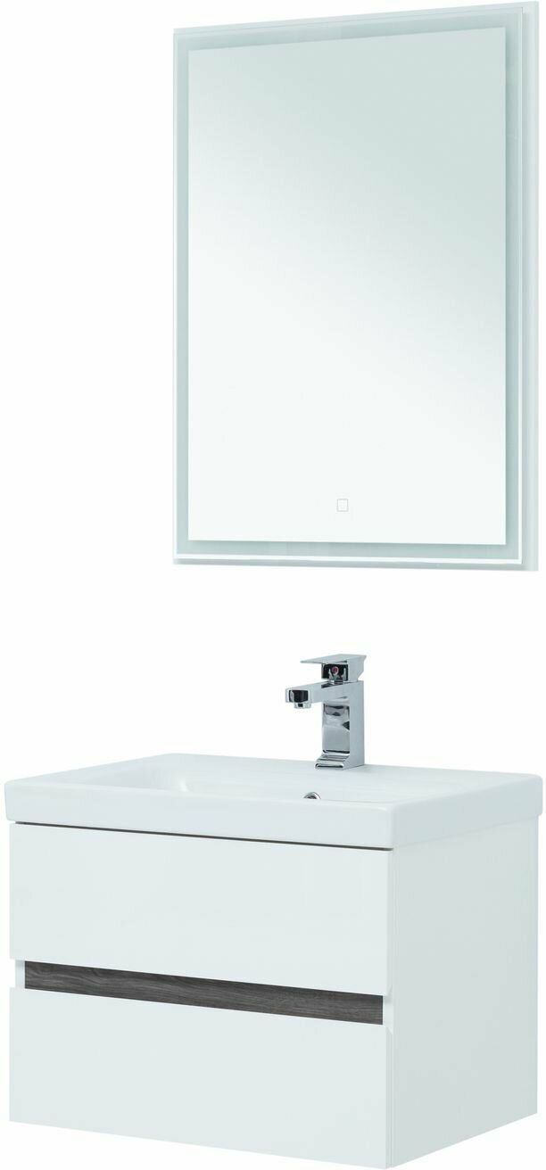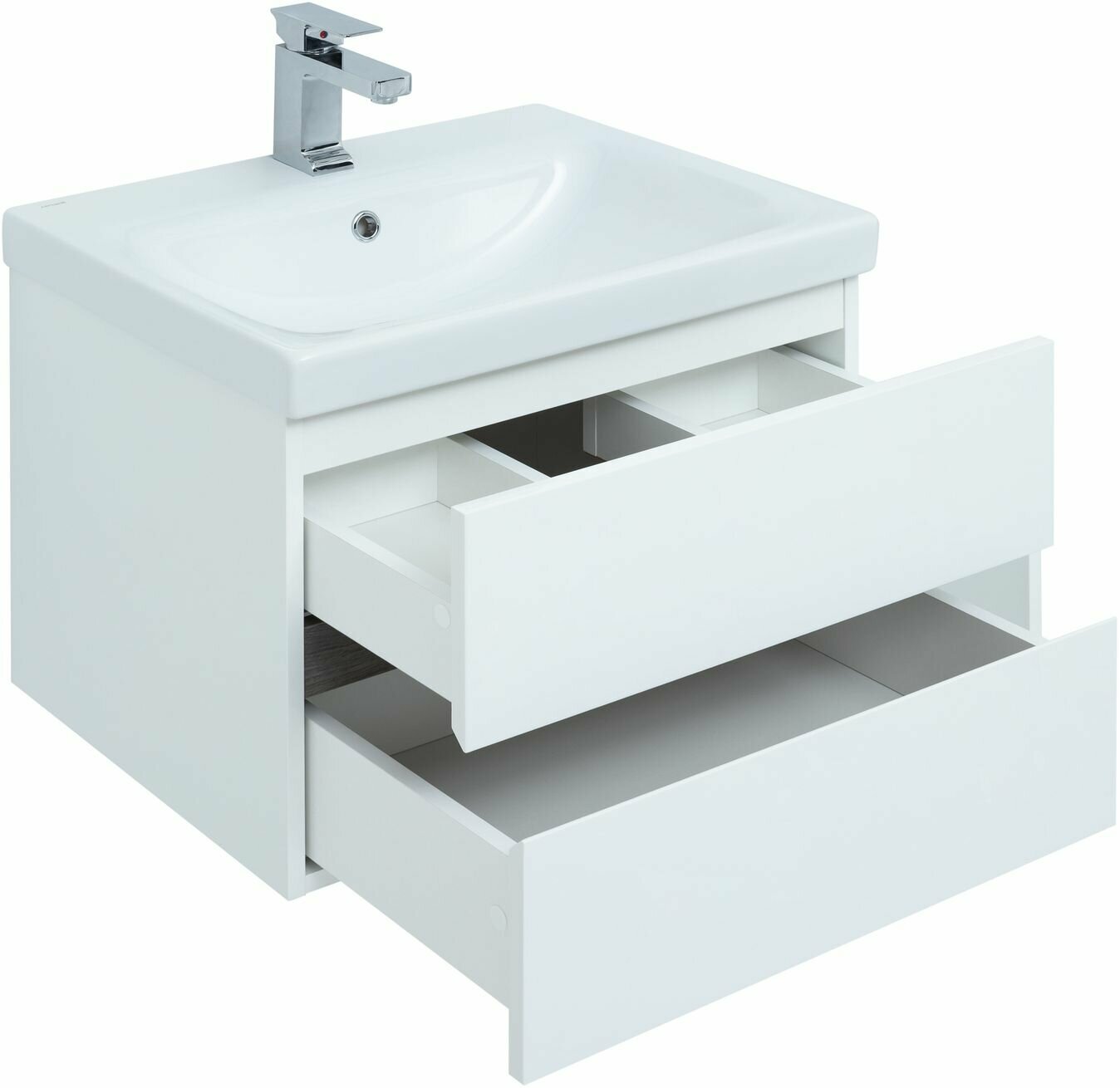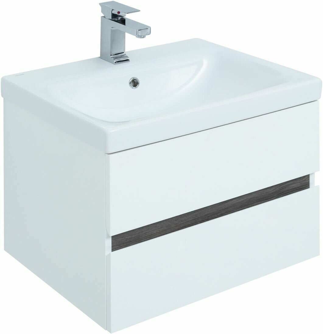 Тумба под раковину Aquanet Беркли 60 см 254289 белый глянцевый/дуб рошелье подвесная 2 ящика