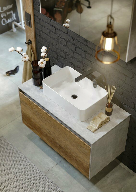 Тумба-умывальник Comforty Осло 80 бетон светлый с раковиной Fest 80