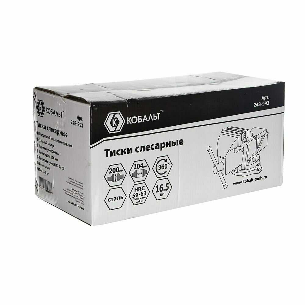 Тиски слесарные кобальт 248-993 поворотные, стальные ширина губок 200 мм, захват 200 мм