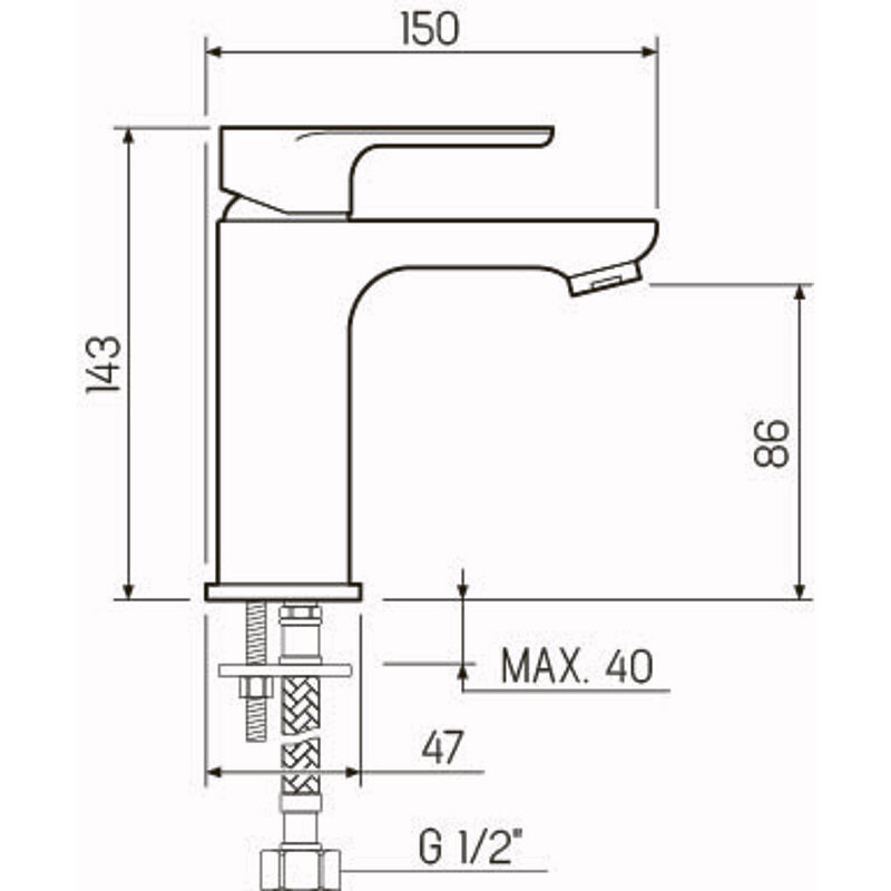 Смеситель для умывальника, РМС SL133-001F, монолитный излив, однорычажный, с гибкой подводкой
