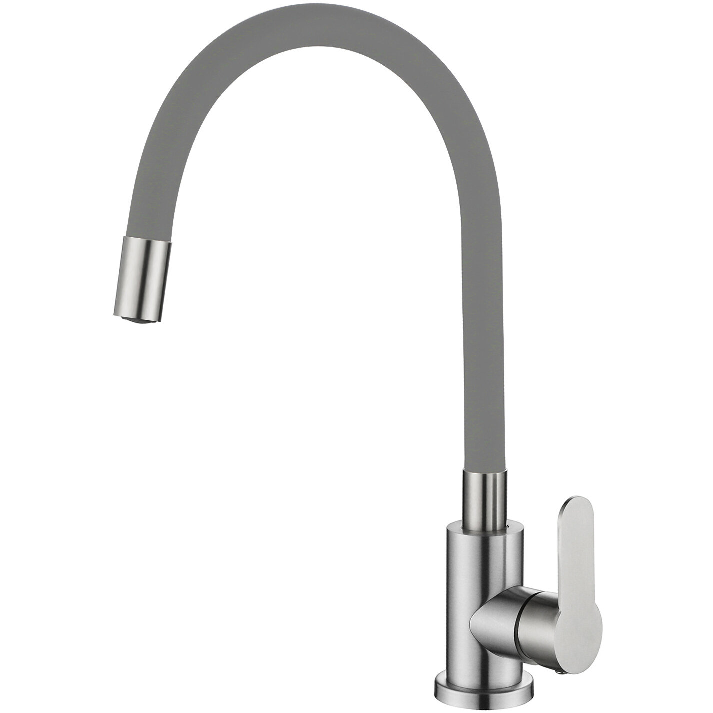 Смеситель для кухни OUTE из нержавеющей стали SUS 304 цвет матовый хром с серым гибким силиконовым изливом