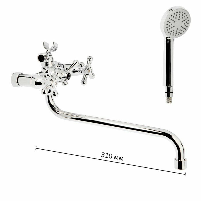 Смеситель для ванны "Центр Сантехники" 6766, двухвентильный, настенный, с душевым набором, латунь, хром интересное: