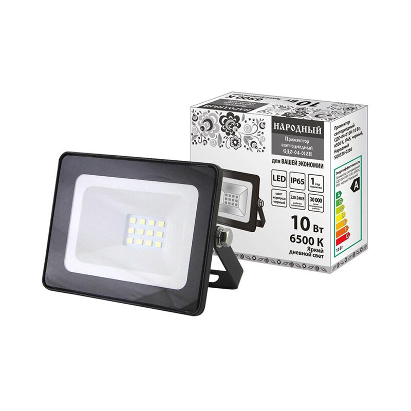 Прожектор светодиодный Народный СДО-04-010Н, 10 Вт, 6500 К, IP65, черный