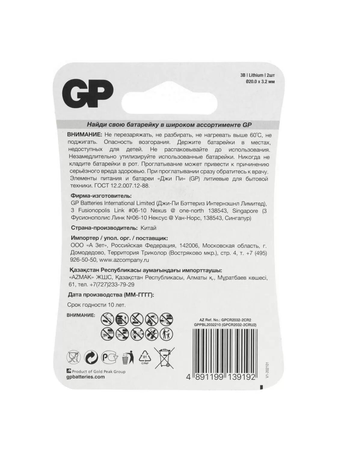 Батарейка GP CR 2032 3V Blister, упаковка 2 шт.