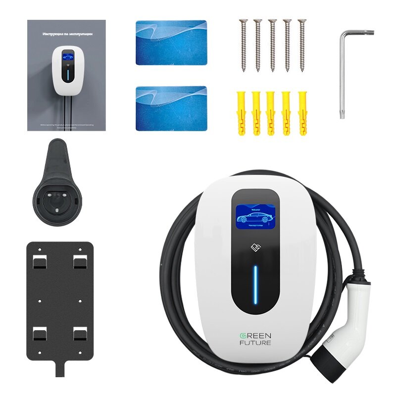 Зарядная станция для электромобилей Green Future, мощность 7 кВт, тип разъёма GB/T, поддержка приложения для смартфона, цвет чёрный