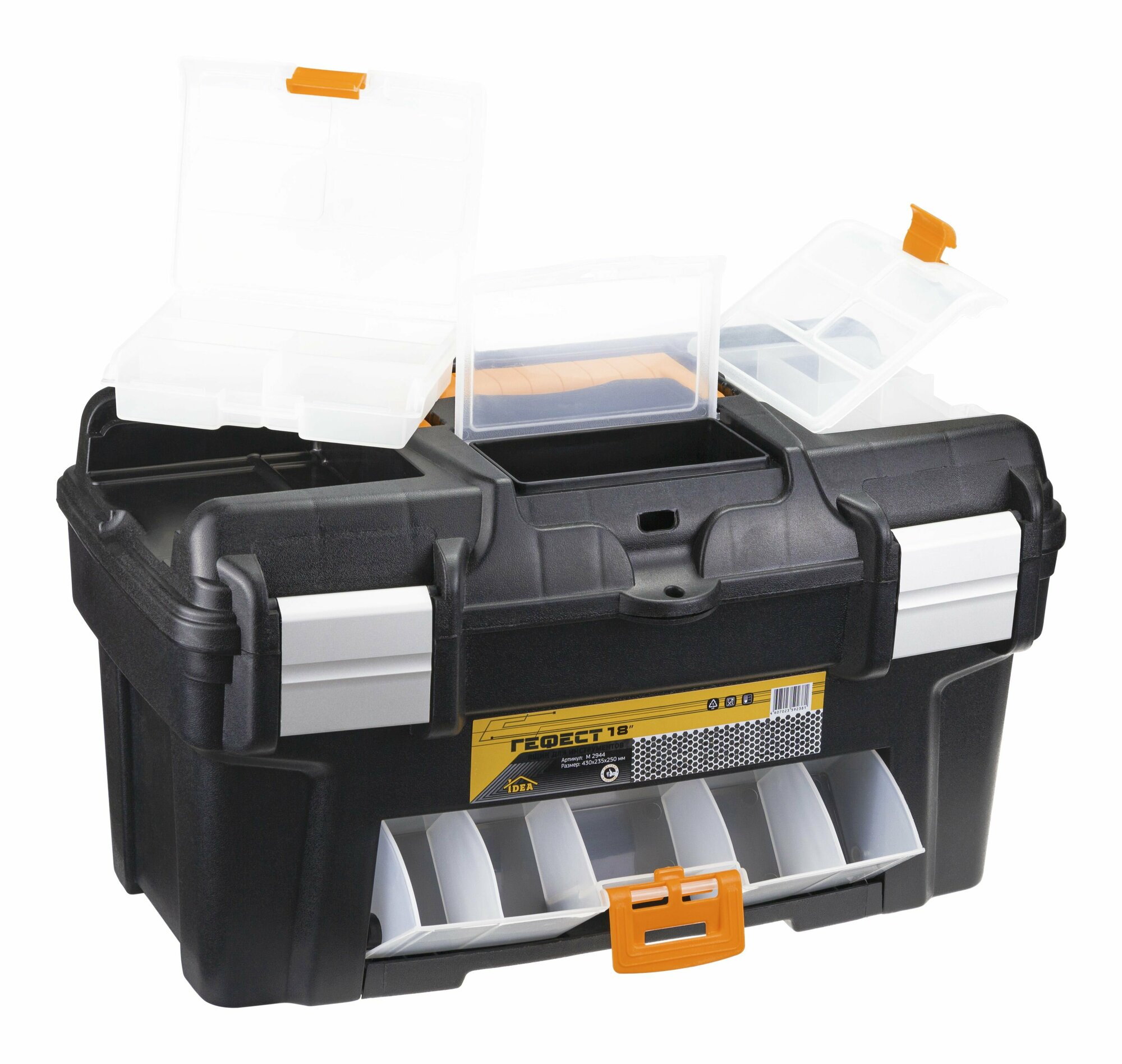Ящик для инструментов М 2944 гефест 18' черный-желтый 43х23,5х25 см