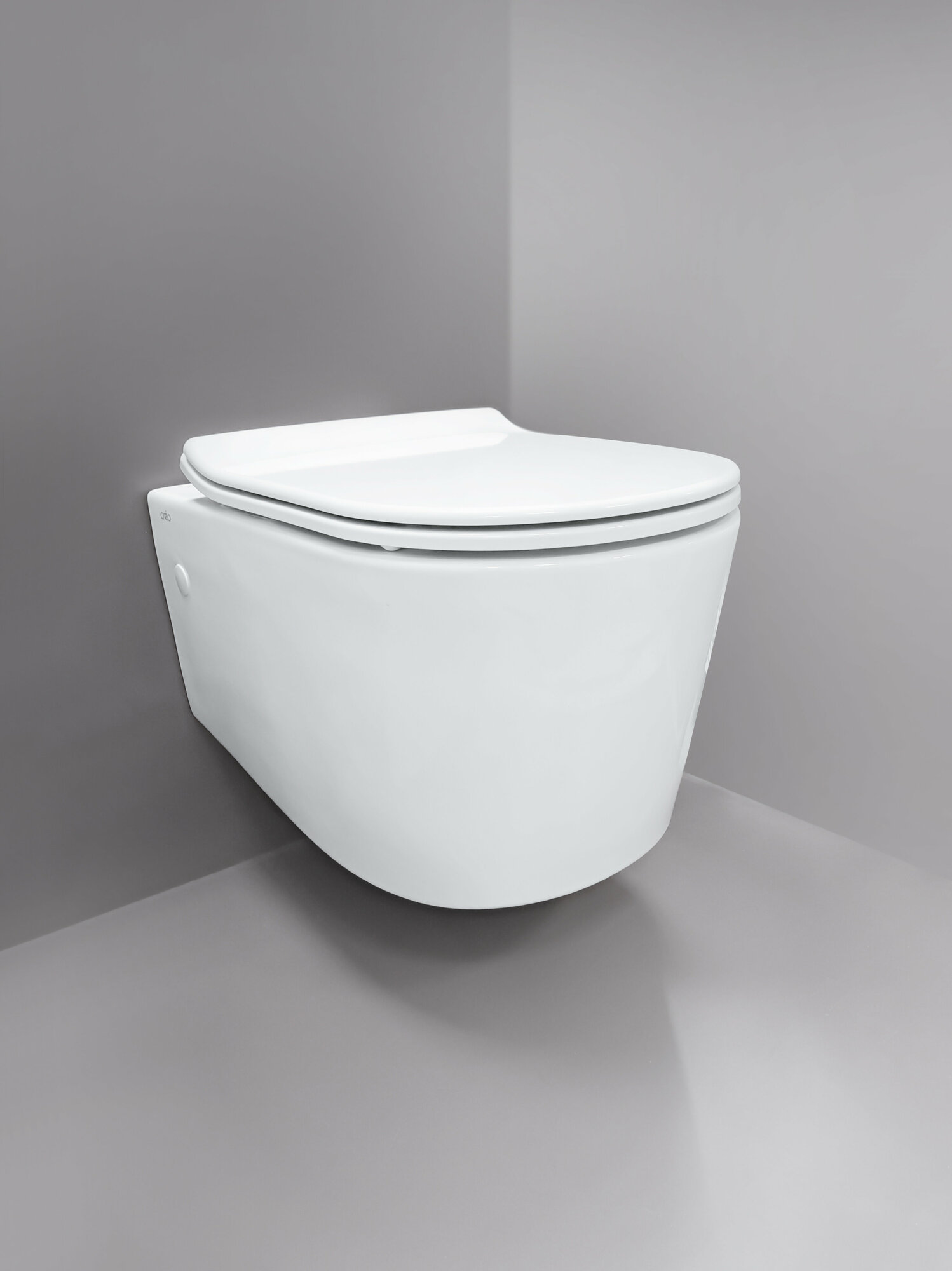 Унитаз подвесной безободковый с тонким сидением CREO RENNES 2.0 (RE1001T+RE1100R) интересное: