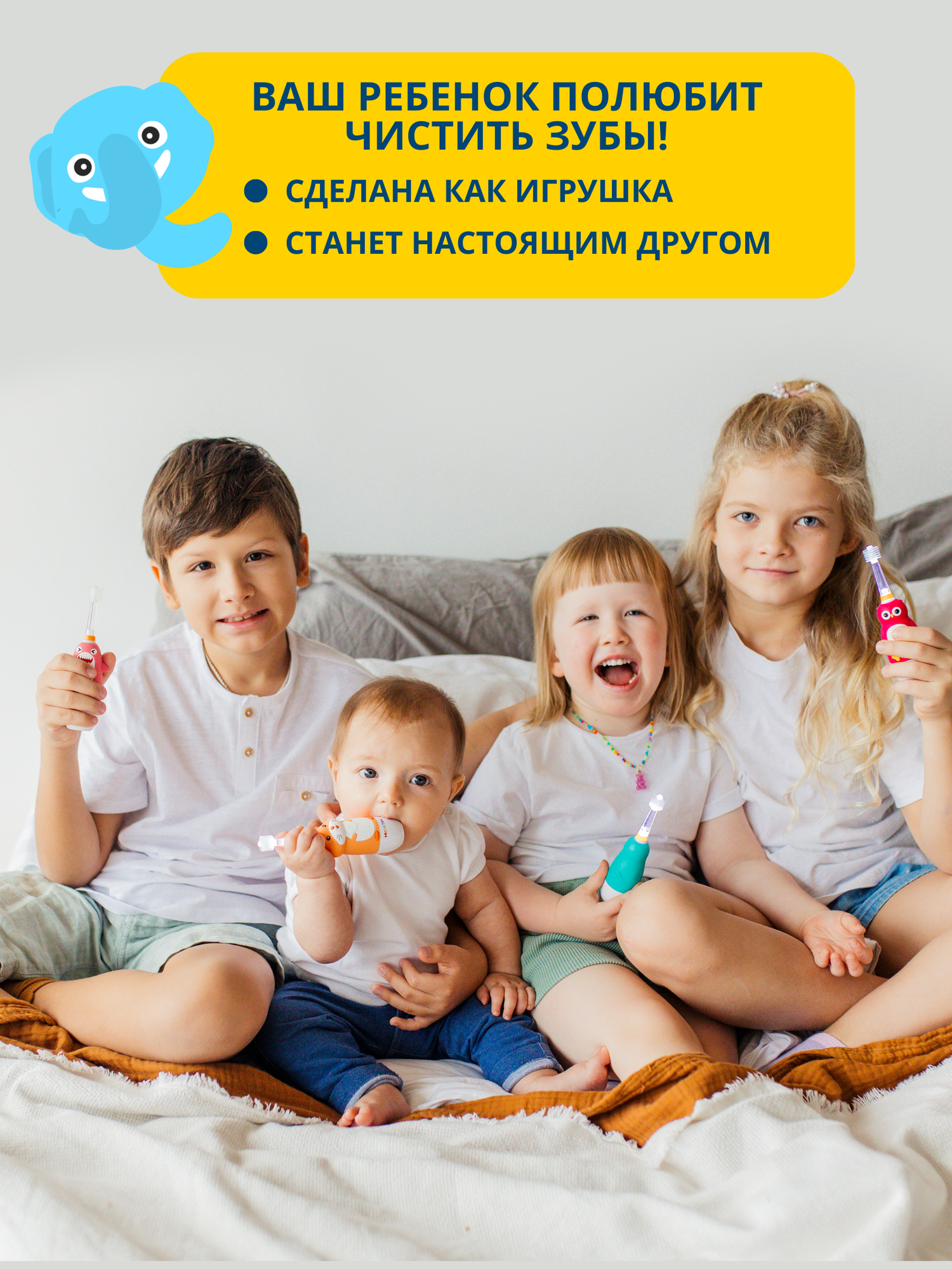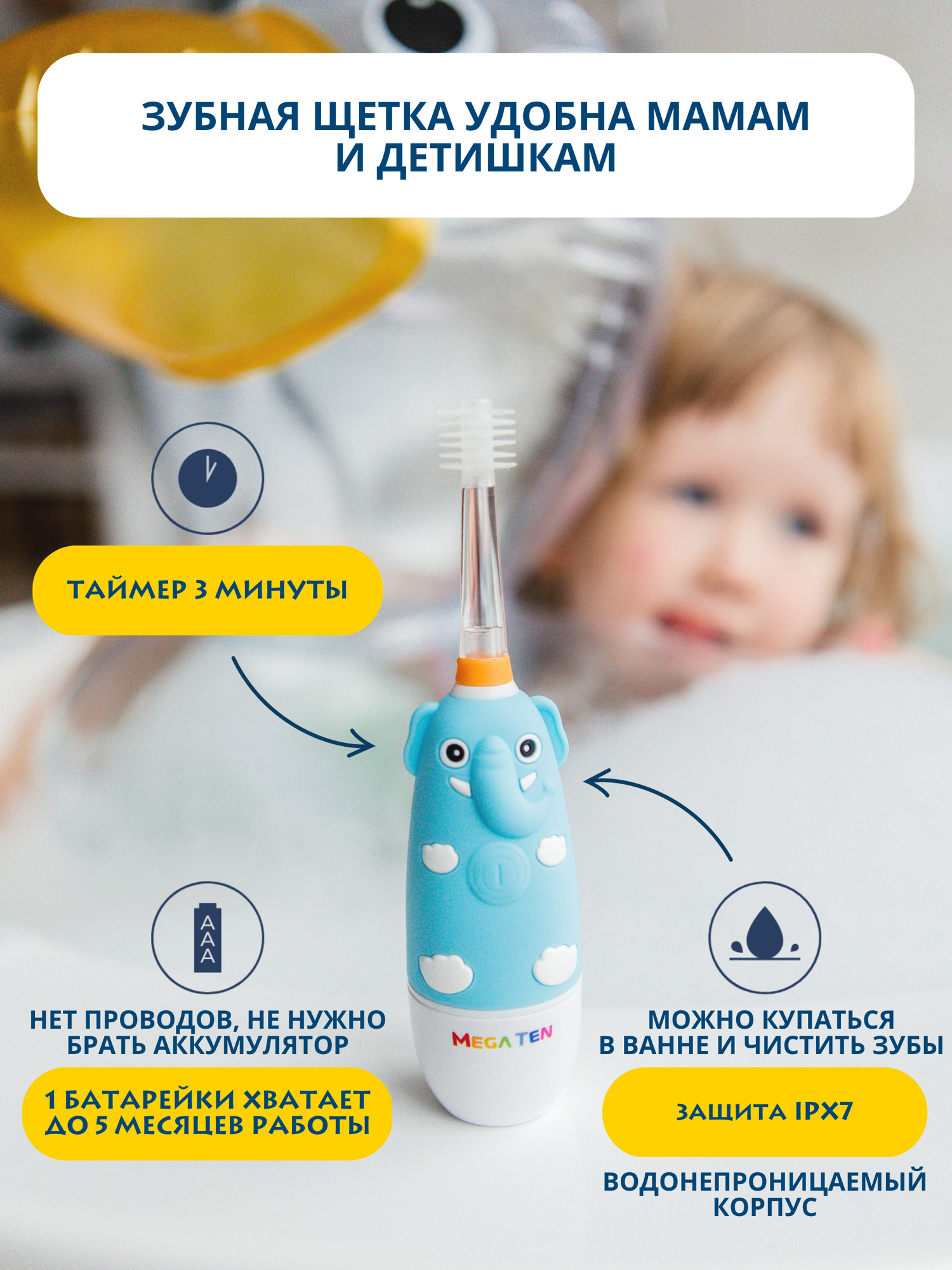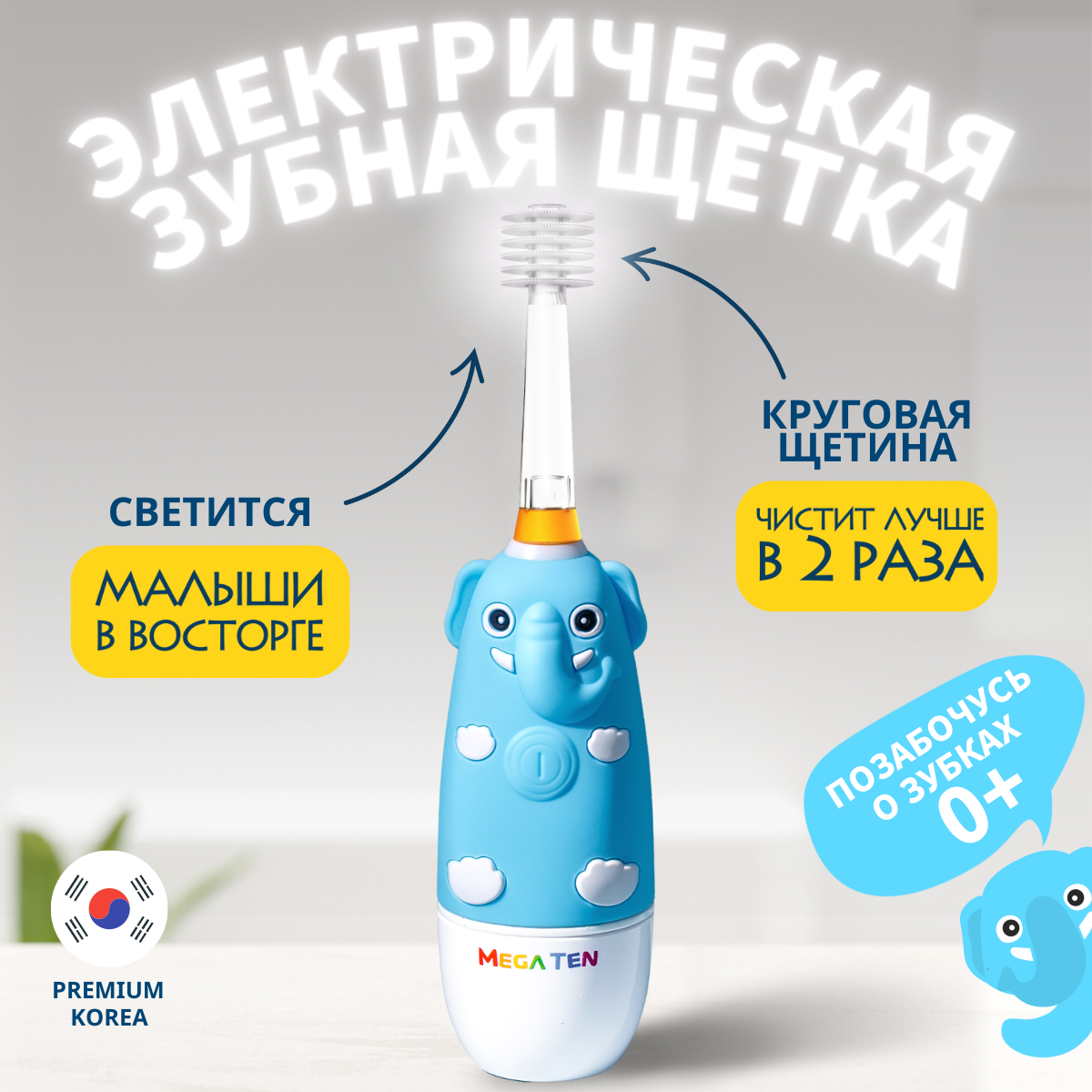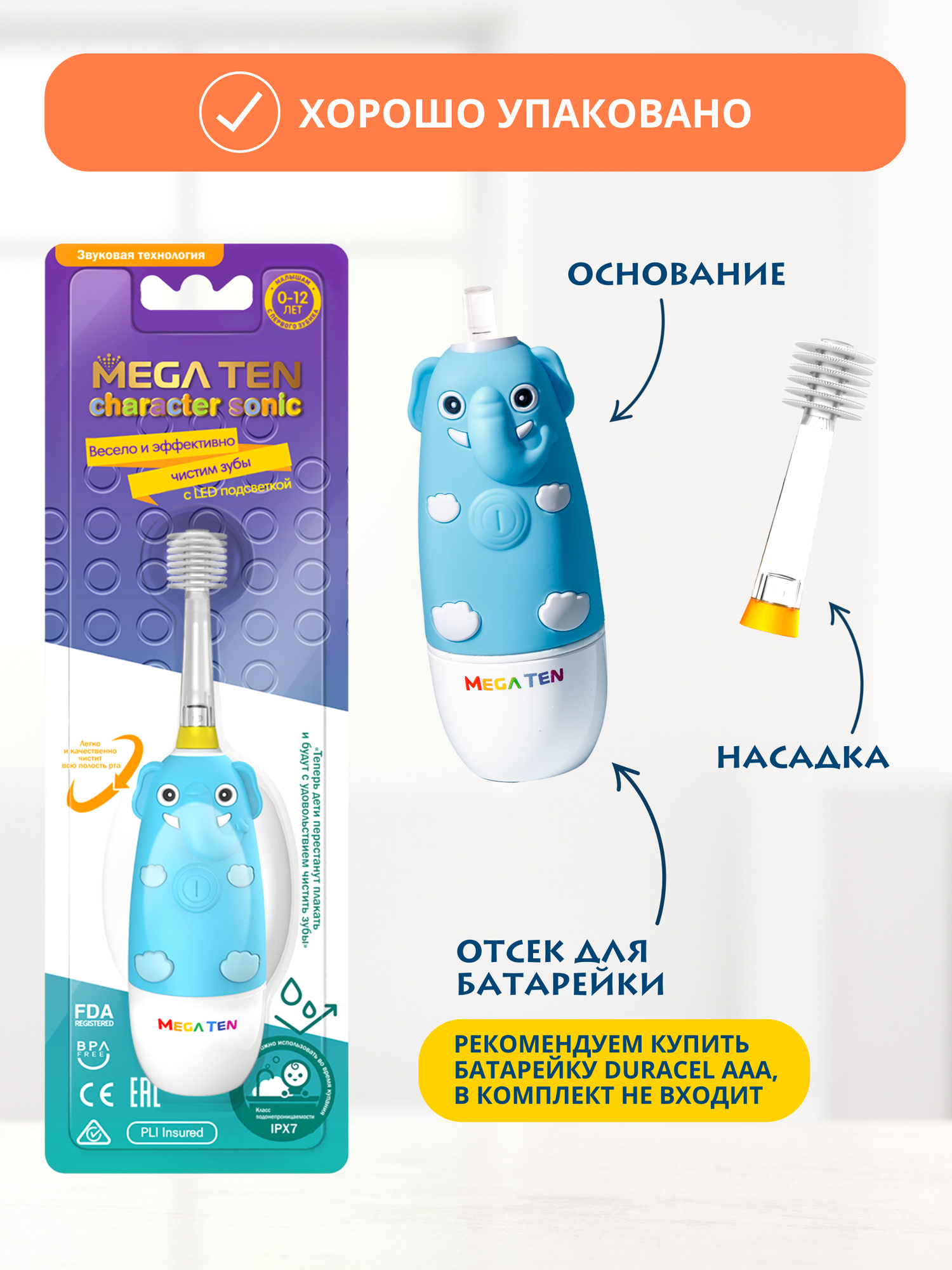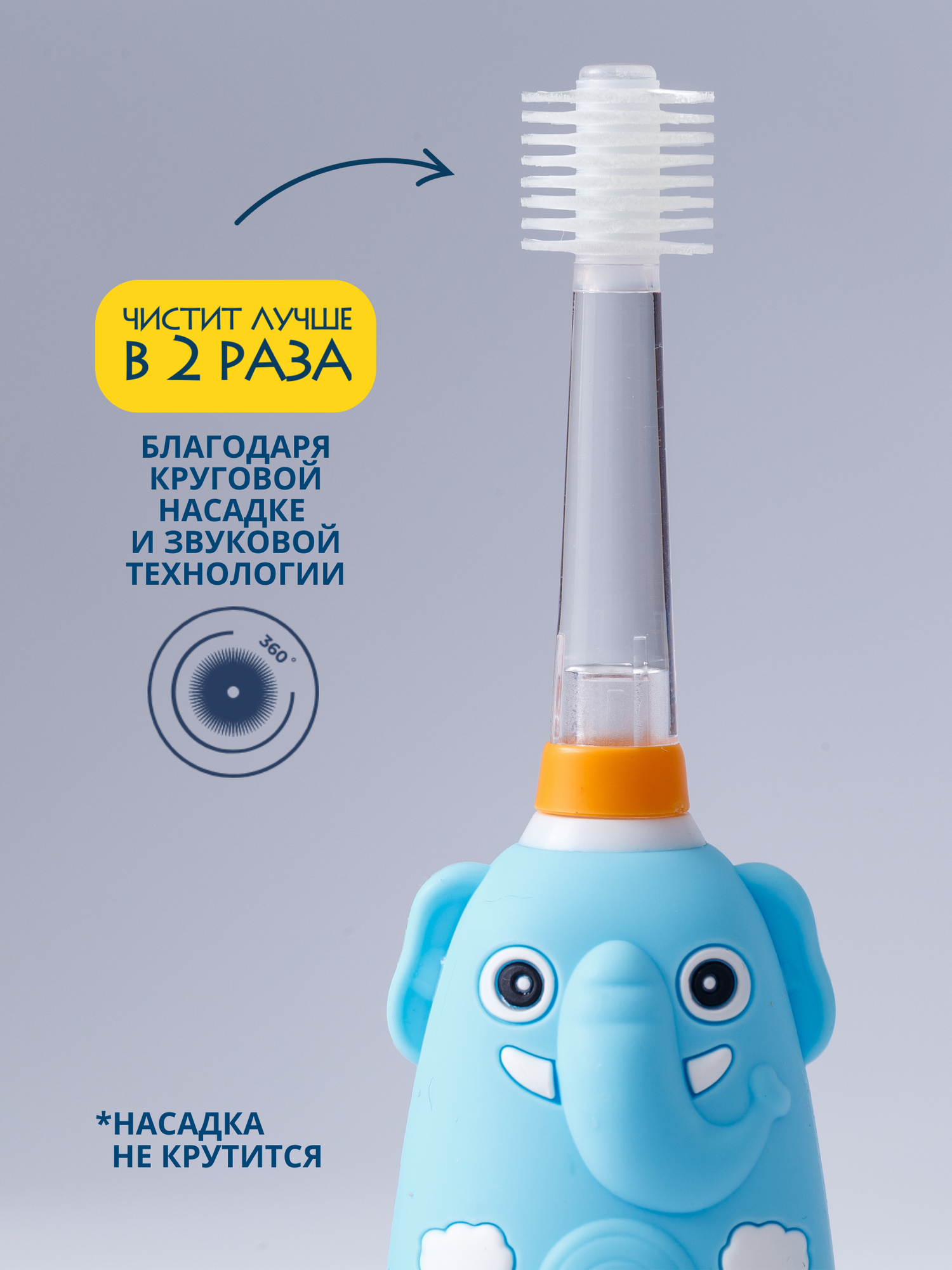 Электрическая зубная щетка детская звуковая "Слоненок" Megaten Mega ten Kids Sonic интересное: