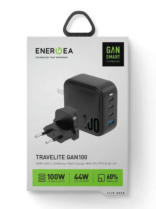 Сетевое зарядное устройство EnergEA Travelite Gan100 100W Black (CHR-TL-GAN100EU) интересное: