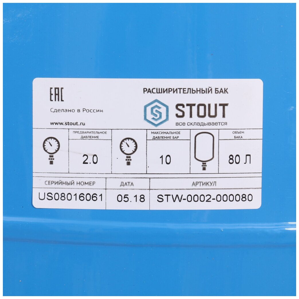 STW-0002-000080 STOUT Расширительный бак, гидроаккумулятор 80 л. вертикальный (цвет синий)