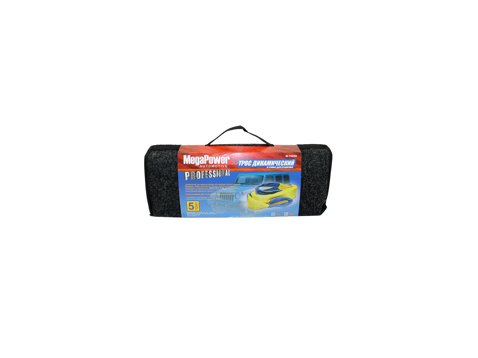 MEGAPOWER Трос динамический буксировочный 5000кг длина 9м, ленточный без крюков в сумке M-75059