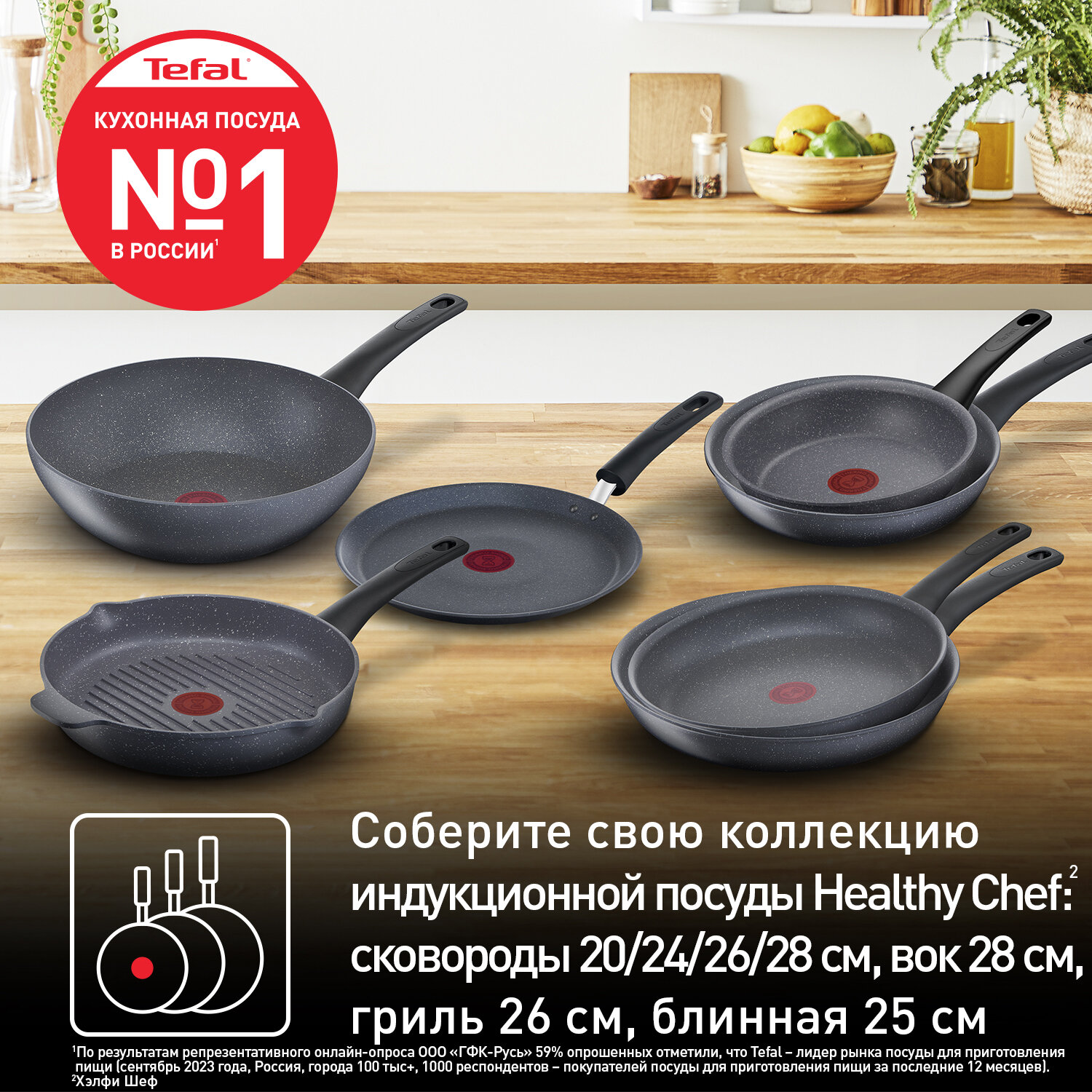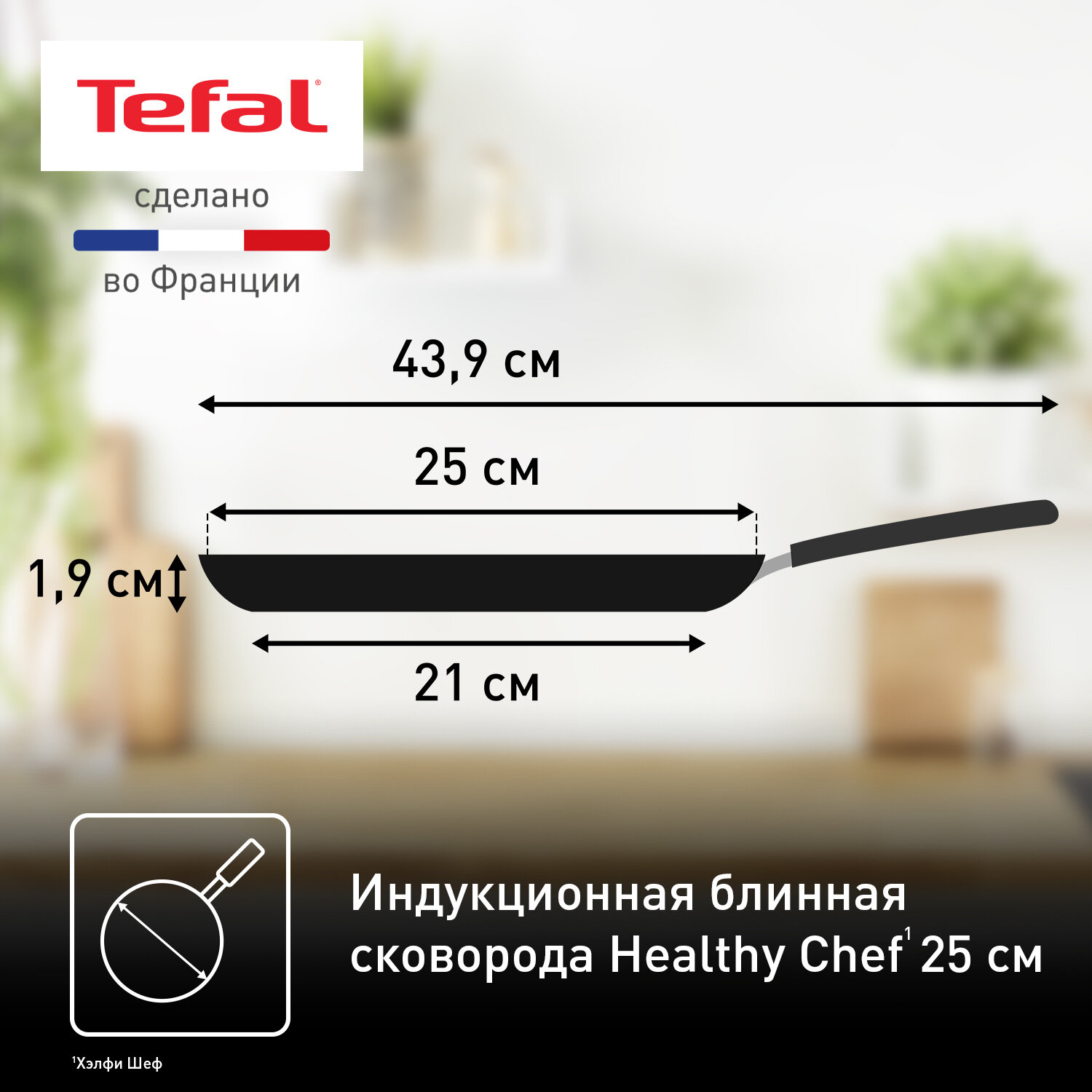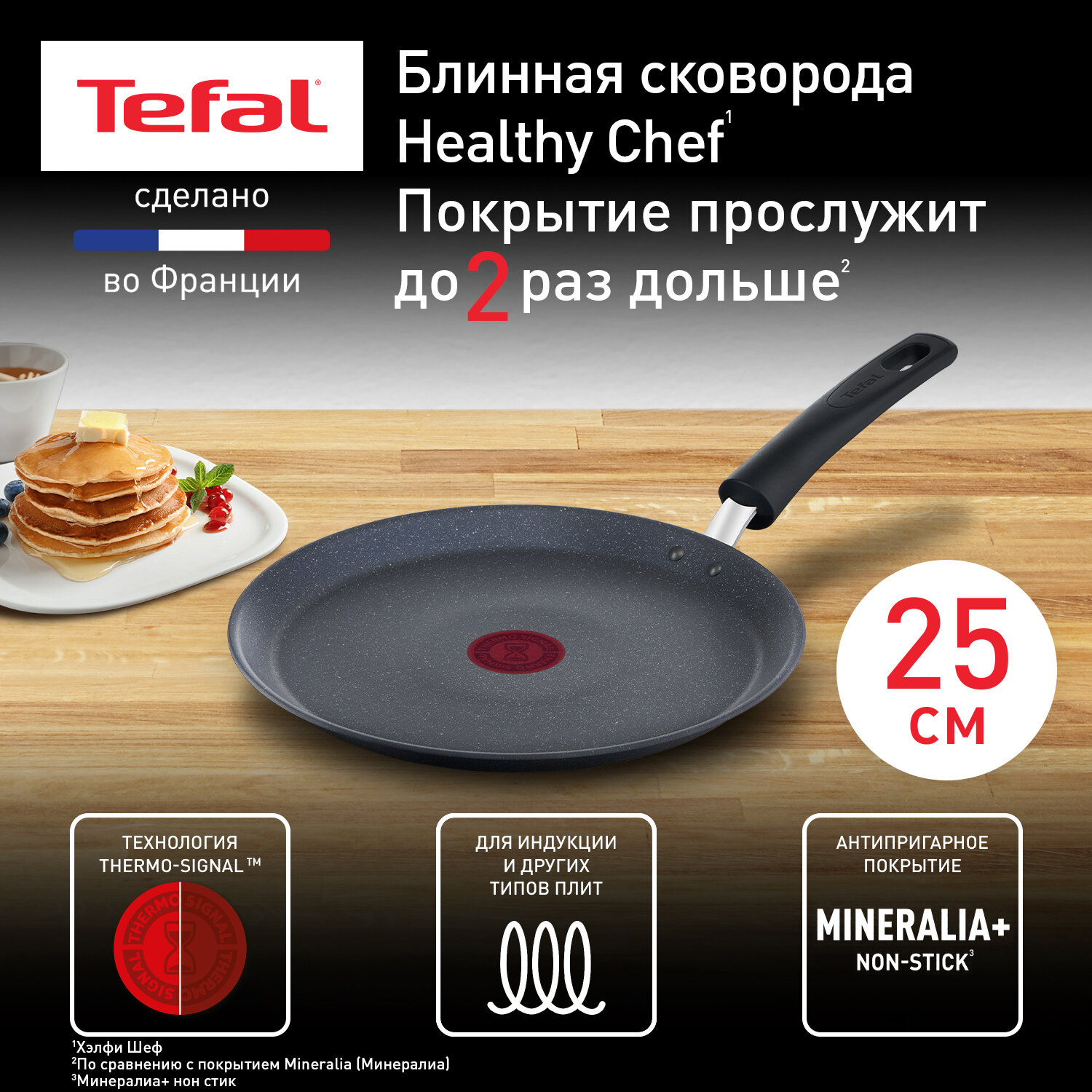 Блинная сковорода Tefal Healthy Chef G1503872, 25 см, с антипригарным покрытием, подходит для индукции, сделано во Франции