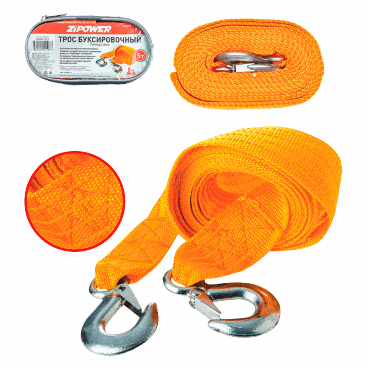Трос Буксировочный 5000 Кг 5 М 2 Крюка ZiPOWER арт. PM4106R